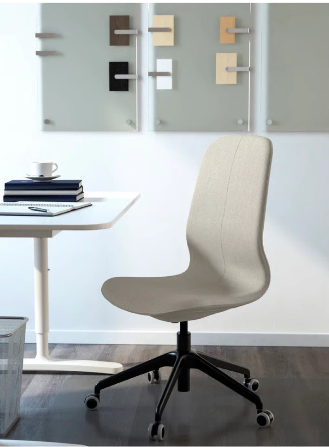 IKEA LÅNGFJÄLL office chair — beige/black. Good condition, some light wear/ding from normal use (light color). Cover is removable and can be washed. Comfortable and sturdy