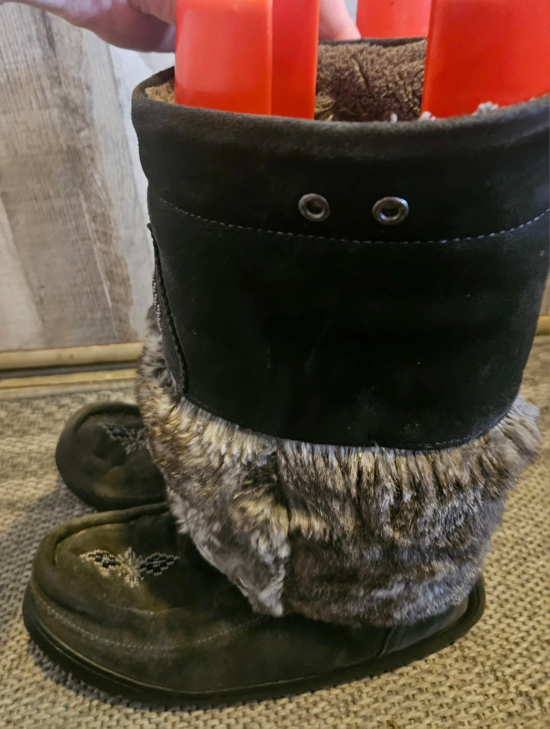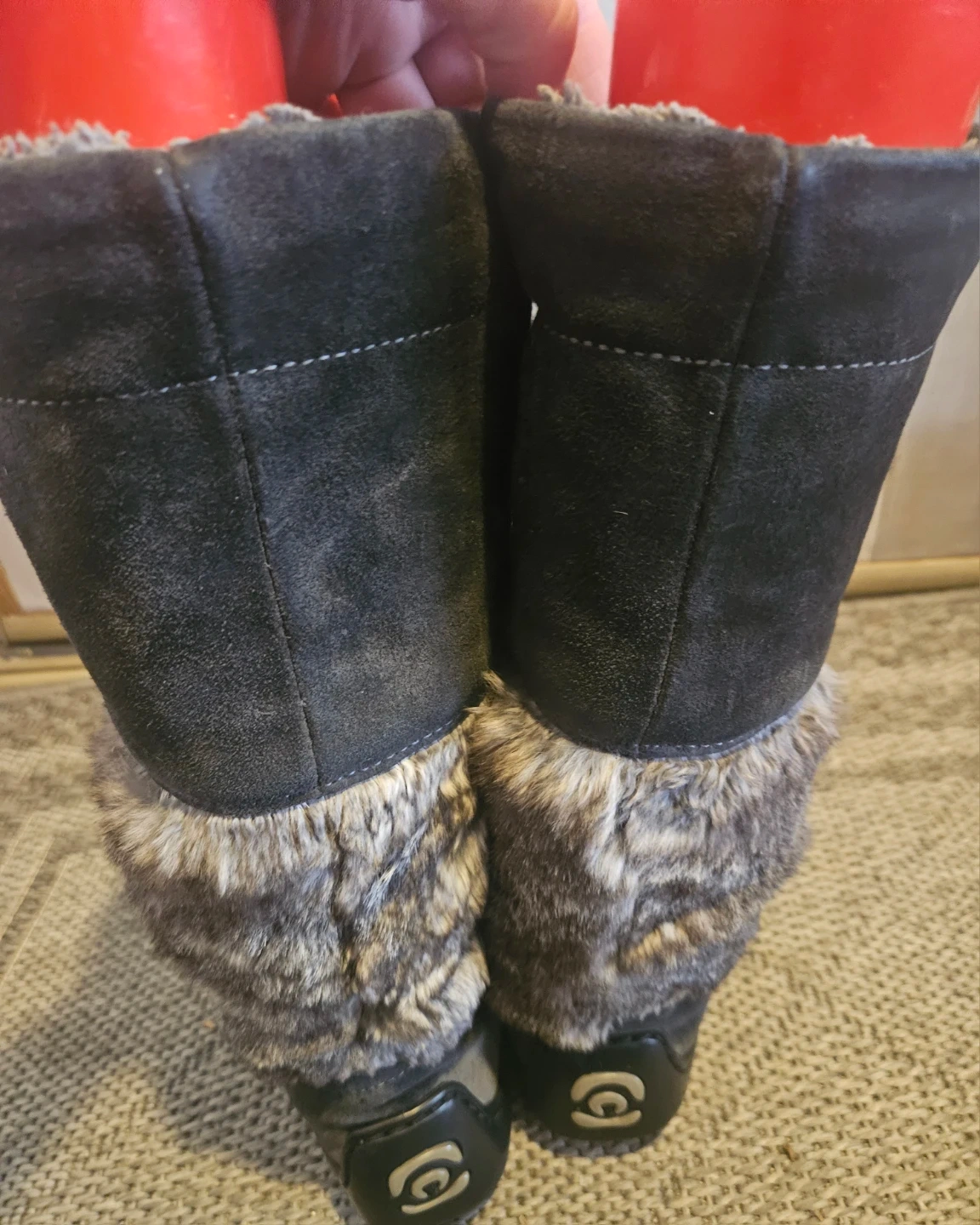 Inside fur on inner left side has some small areas of fur patches missing. price reduced to reflect. This can be fixed. Refer to last two pictures.