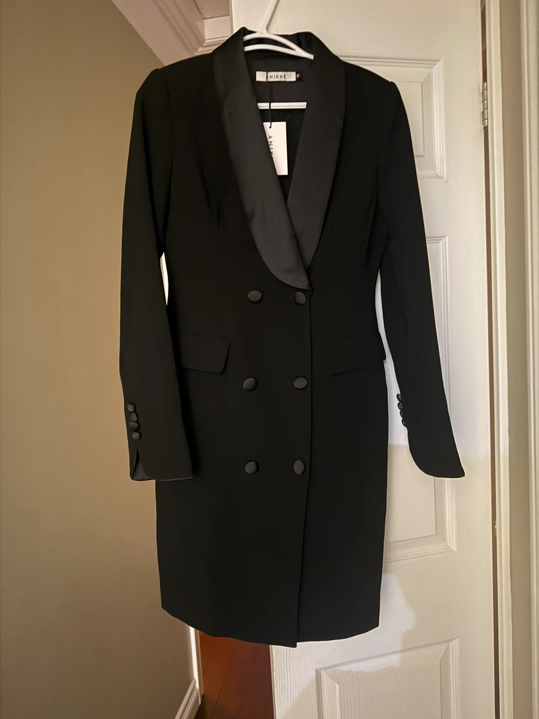 New! Stylish ✨Womens Satin Lapel and Cuff Tuxedo Blazer Dress