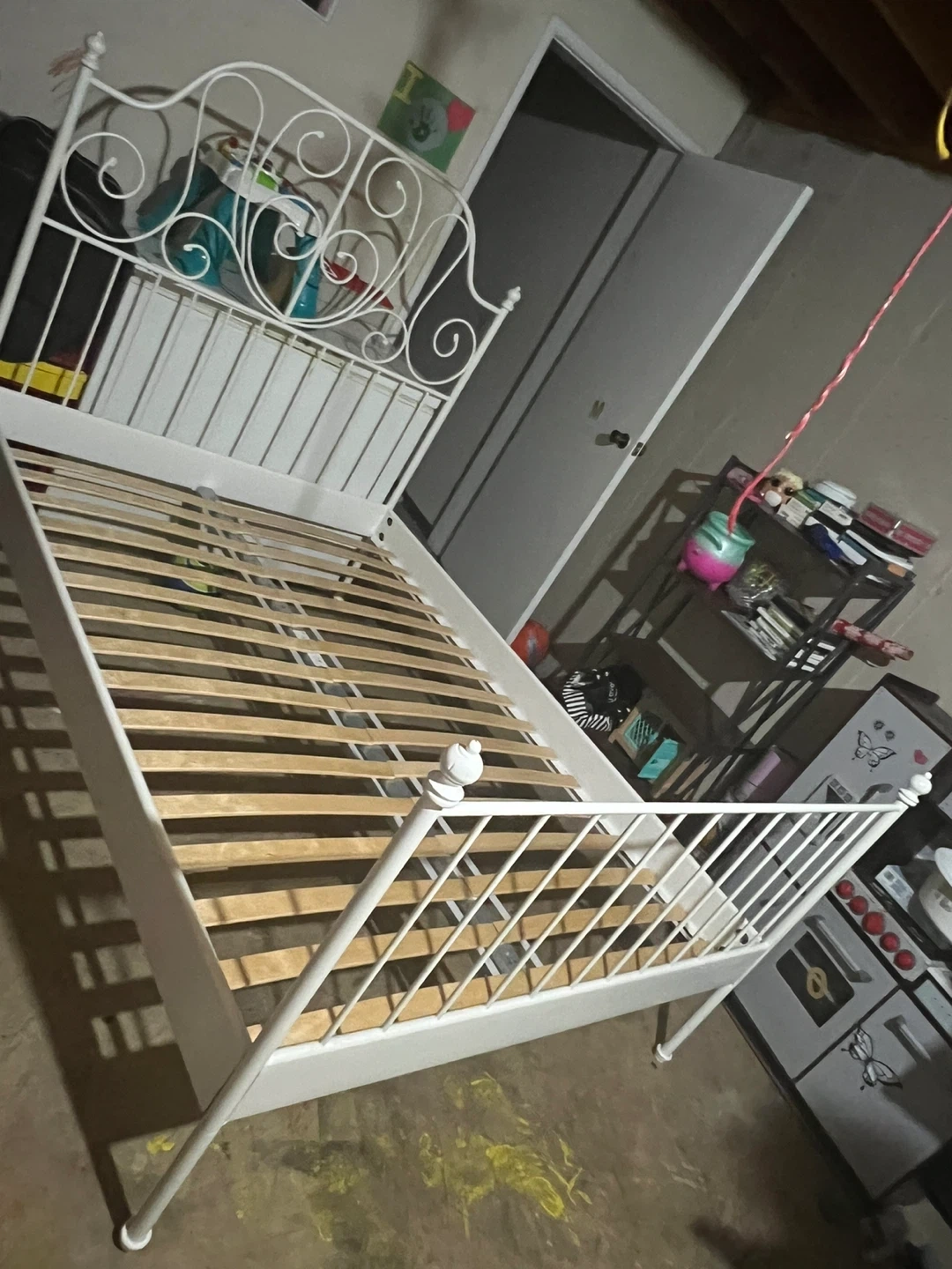 Selling a white metal bed frame! It's in good condition and ready for a new home. Perfect for adding a touch of elegance to your bedroom