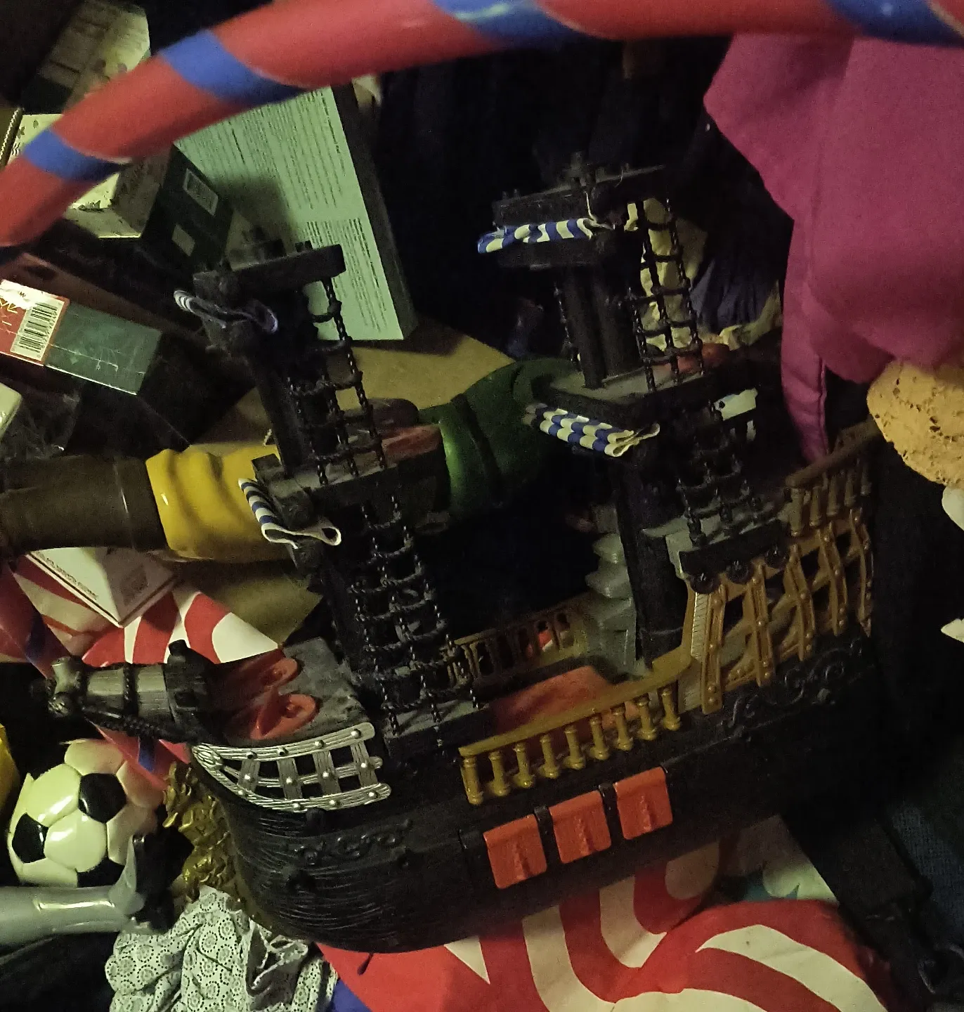 Buy & SellToy Pirate ShipToy Pirate Ship$15This is a toy pirate ship. It's black with gold accents and orange cannons. It has a detailed deck and rigging. Great for imaginative play!WHERE TO MEETCheck LocationView MapSELLERsandyEast Village100 reviews0 chats·0 favorites·4 viewsSEND CHAT TO SELLERHi sandy! I’m interested in your listing.Hi sandy! I’m interested in your listing.Get the Karrot app to chatSign In to chat