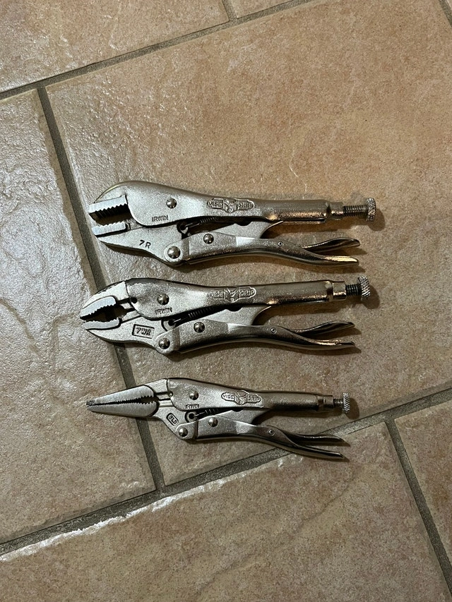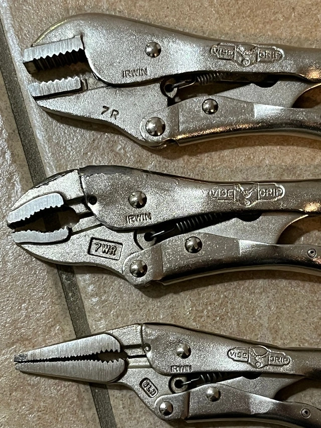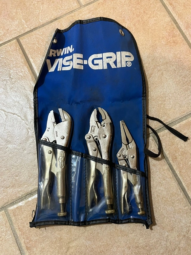 For sale is an Irwin Vise-Grip Set, 3 Pieces Plus Pouch. 7R 7WR 6LN I have a lot more tools, especially for machinists. Please click on my name in the ad to see the other listings. Cash only. Pickup is in Etobicoke, near Queensway and Islington.
