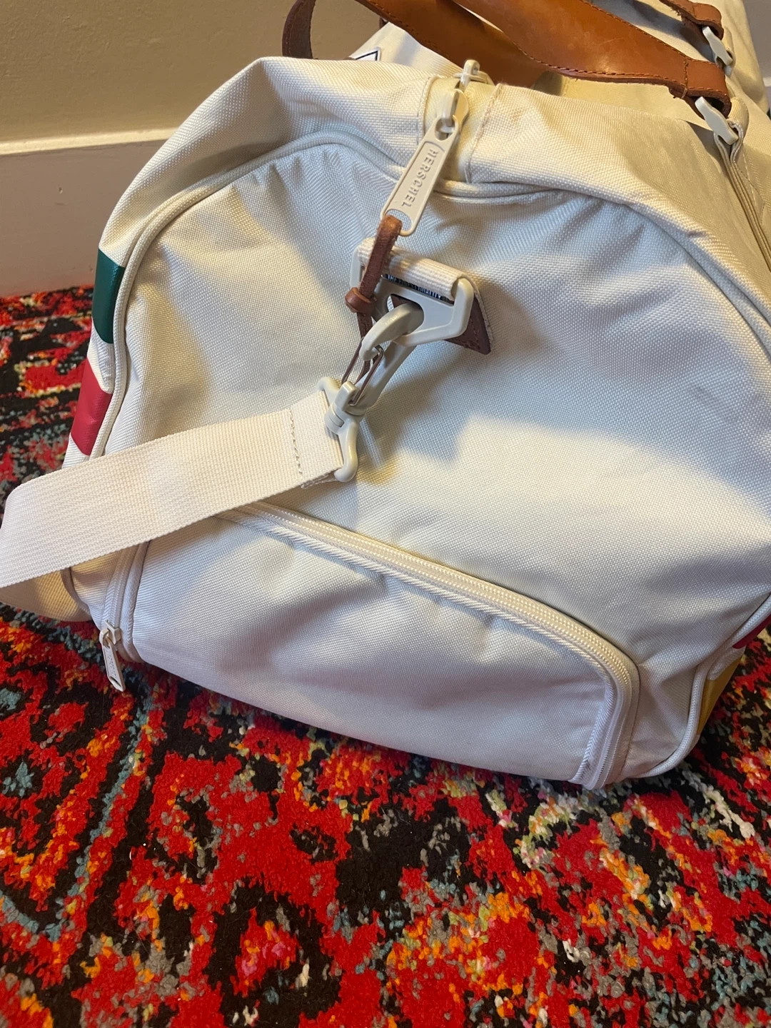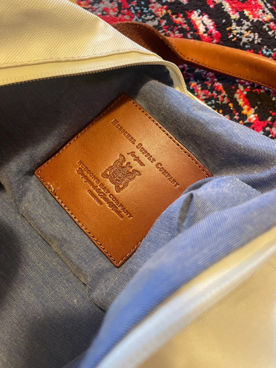 Selling this used HBC x Herschel Duffel Bag (retailed in 2016) that “combines the iconic HBC stripes with premium Herschel Supply finishes, including vegetable tanned leather and blue chambray liners.” See photos for general condition - aside from a few scruffs to outer fabric that could be cleaned up, the duffel is in great condition with no tears, rips, or stains. Internal lining is in perfect condition and all zippers are intact. Let me know if you have any questions about the item.
