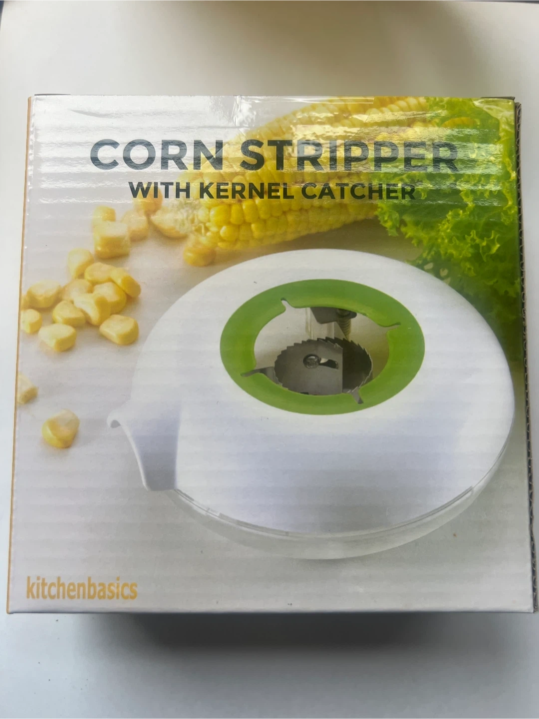This Kitchenbasics corn stripper removes kernels with a built-in catcher. It's designed for easy use and cleanup. Helps prepare fresh corn for meals quickly!