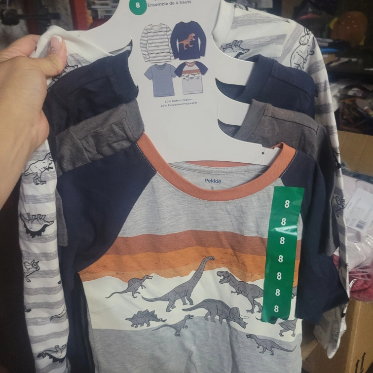 Size 8 - 4 Long Sleeve T-shirts with dinosaur designs. Brand new. Rutherford and Kennedy