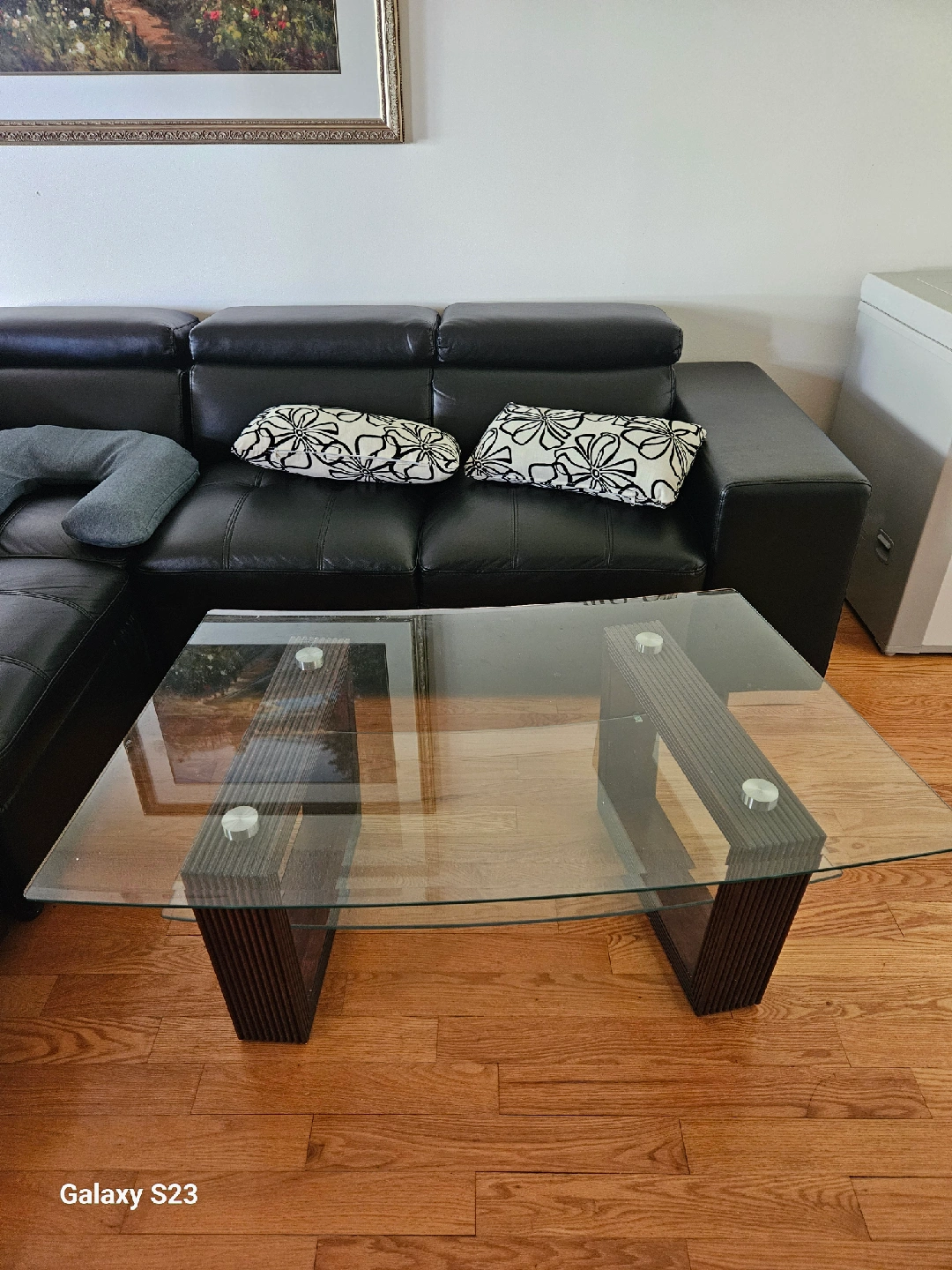 12Selling a glass coffee table in good condition. It has a sleek and modern design that would look great in any living room. The glass top is sturdy and easy to clean, and the base provides ample support