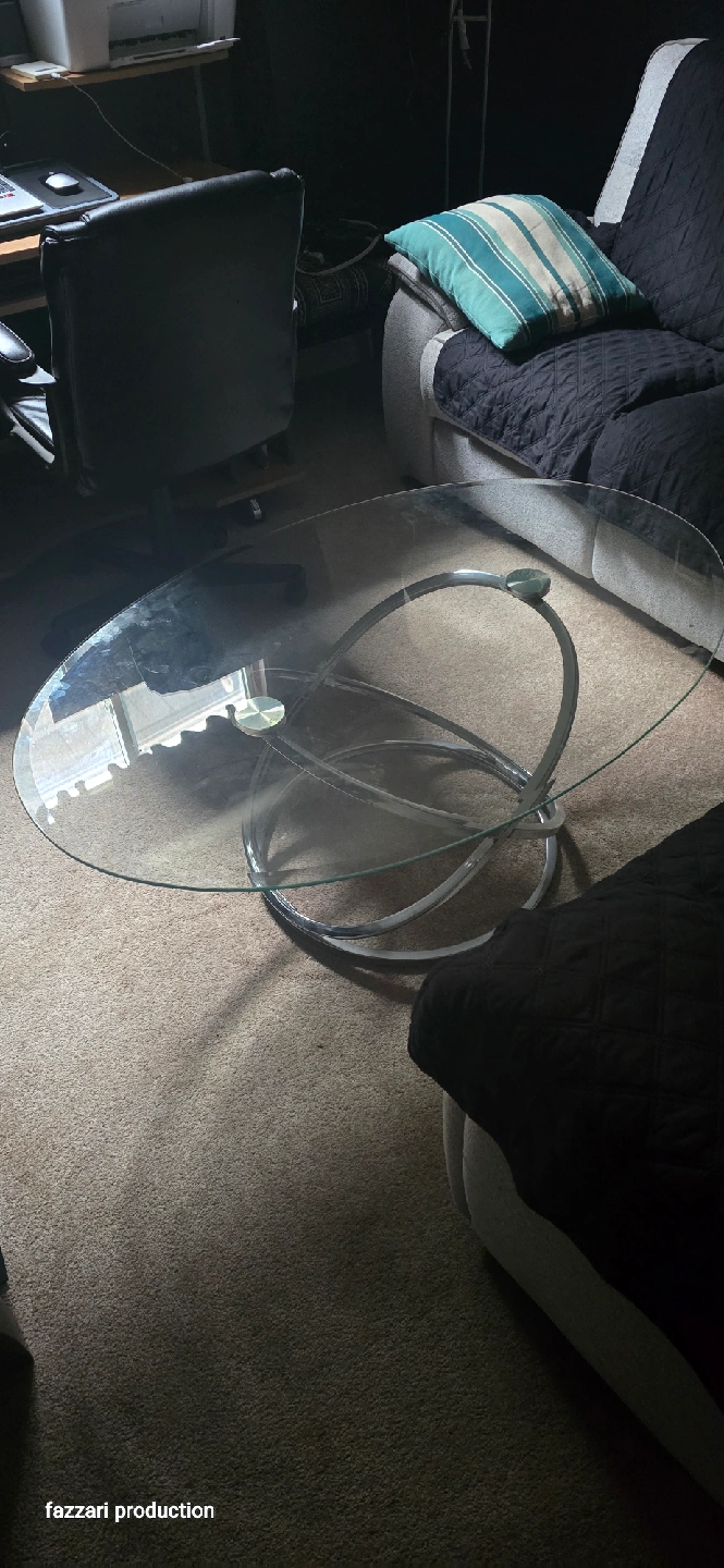15Selling a glass coffee table with a unique, modern design. It's in great condition and would be a stylish addition to any living room