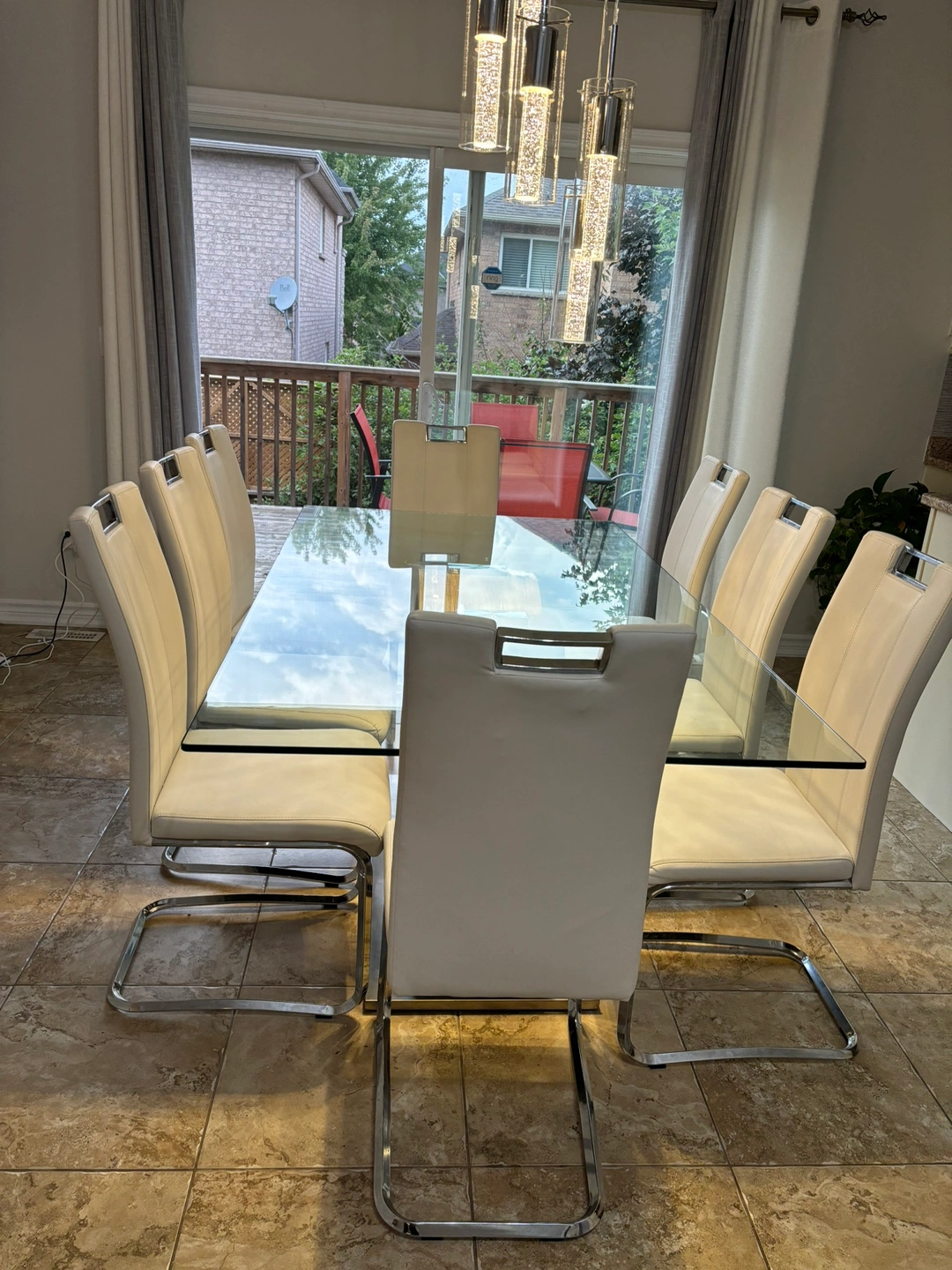 Glass top and stone base dining table