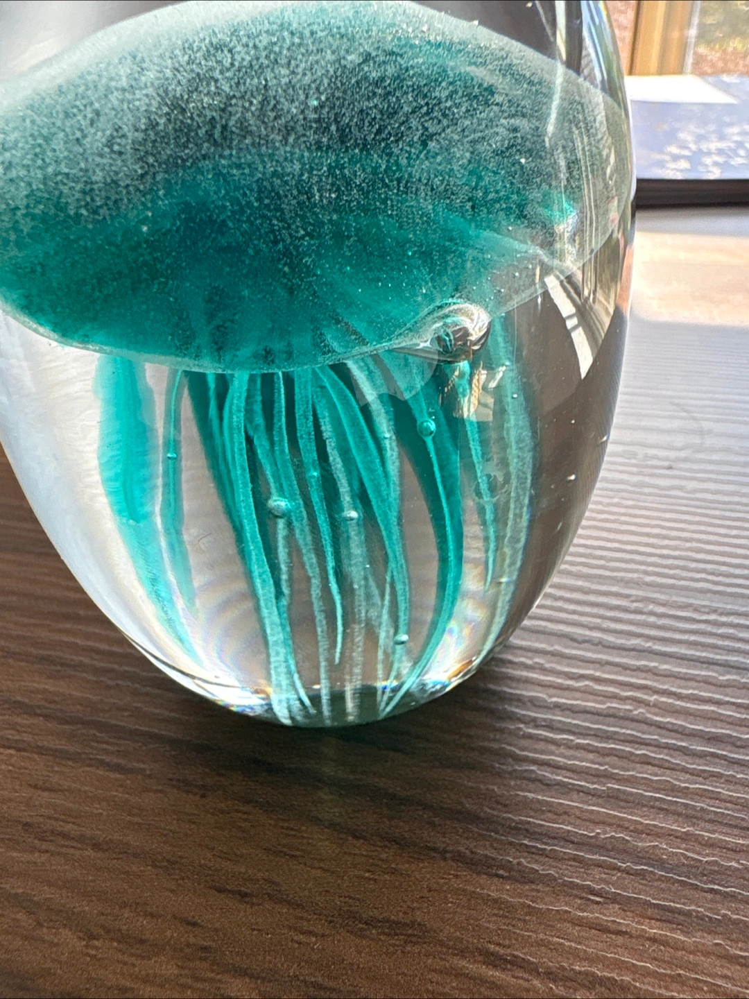 Beautiful glass jellyfish figurine! It's in great condition and would look lovely on a desk or shelf. The colours are very vibrant and mesmerizing!