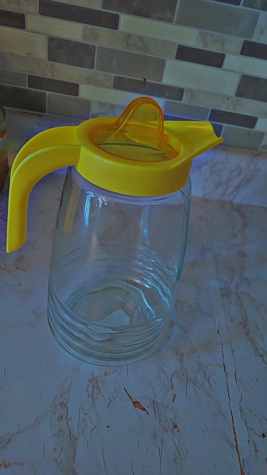 Selling a glass pitcher with a bright yellow lid! It's perfect for serving up your favourite drinks. It's in great shape and ready for a new home