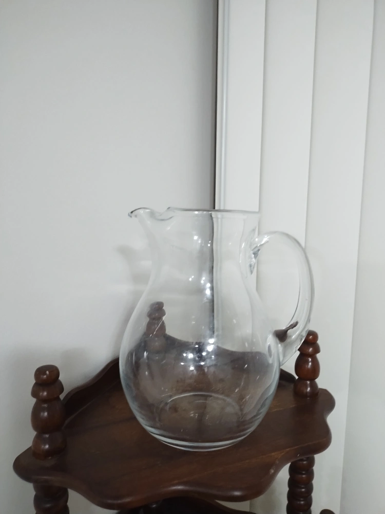 20Clear glass pitcher in great shape! Perfect for serving drinks during summer get-togethers or for everyday use. It's a simple and elegant addition to any table setting