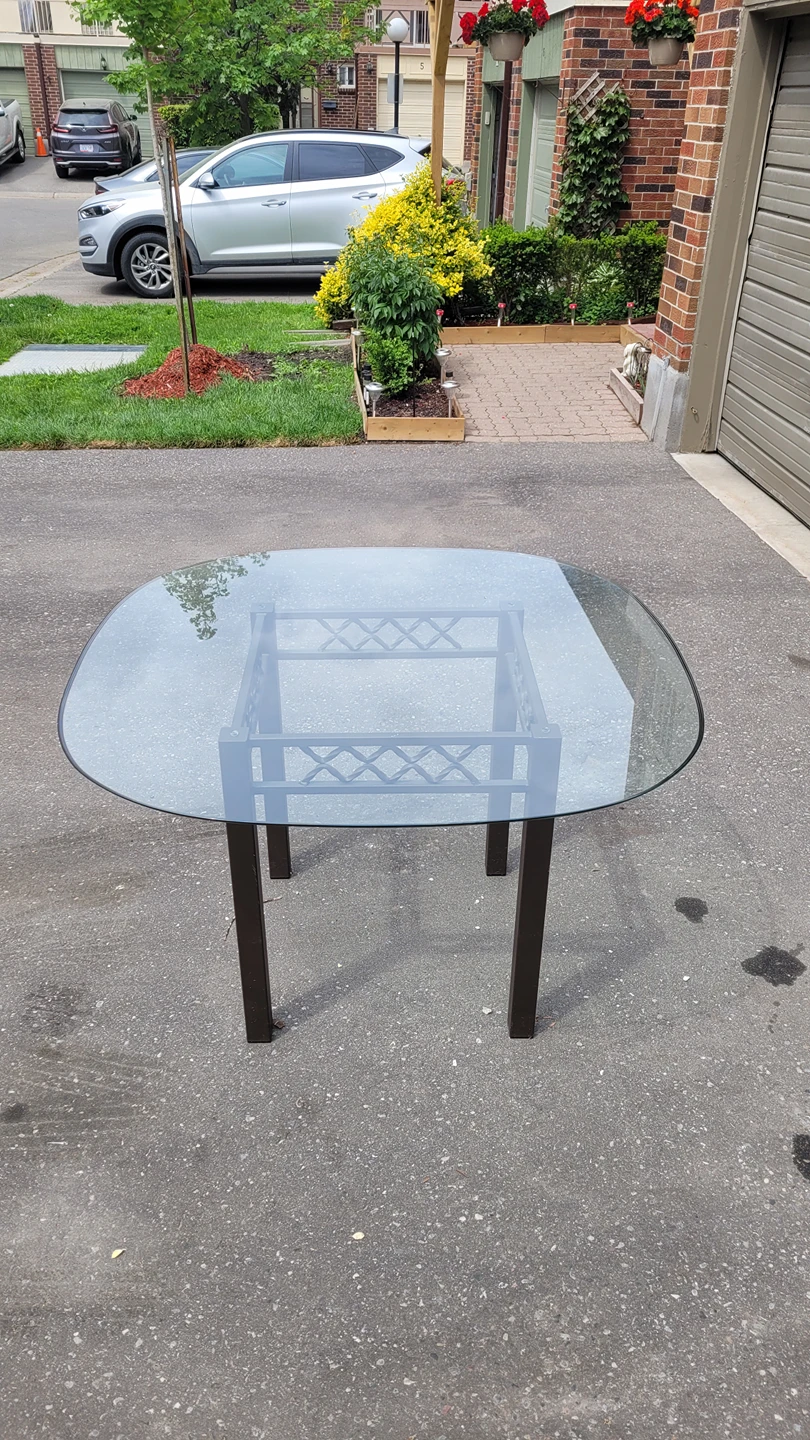15Glass kitchen/dinning room table. Hardly uses, like new. No chairs available. Pick-up only