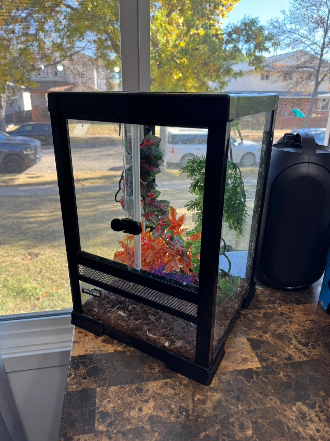 Two glass front door terrariums with fake plants and reptibark substrate. 1 - 12x12x18 $75 obo 1 - 20g 19.1"L x 16.6"W x 22.4"H hex tank $120obo Pick up near londonderry and Belvedere Need to see asap to upgrade my daughters snake to a larger tank