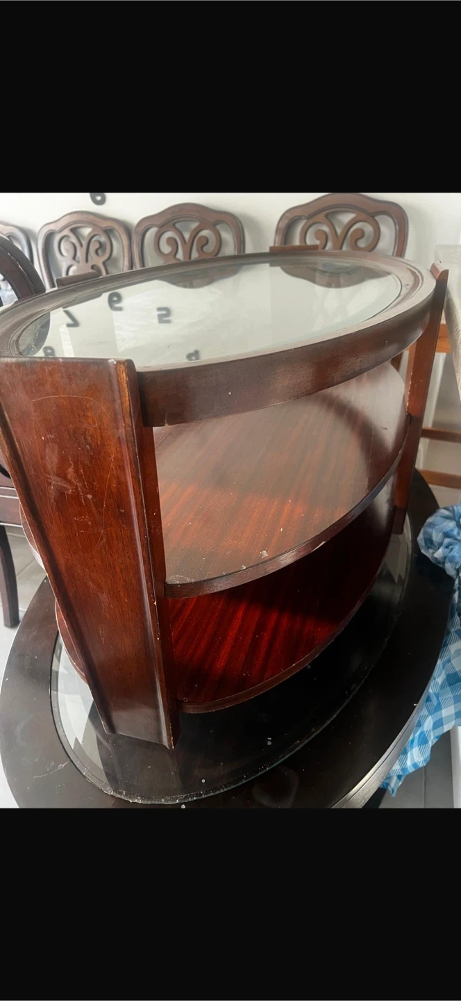 10Selling a beautiful glass top coffee table and a dining set. The coffee table has a unique design with multiple tiers, perfect for adding a touch of elegance to your living space. The dining set includes a large table and chairs, ideal for family meals or entertaining guests.