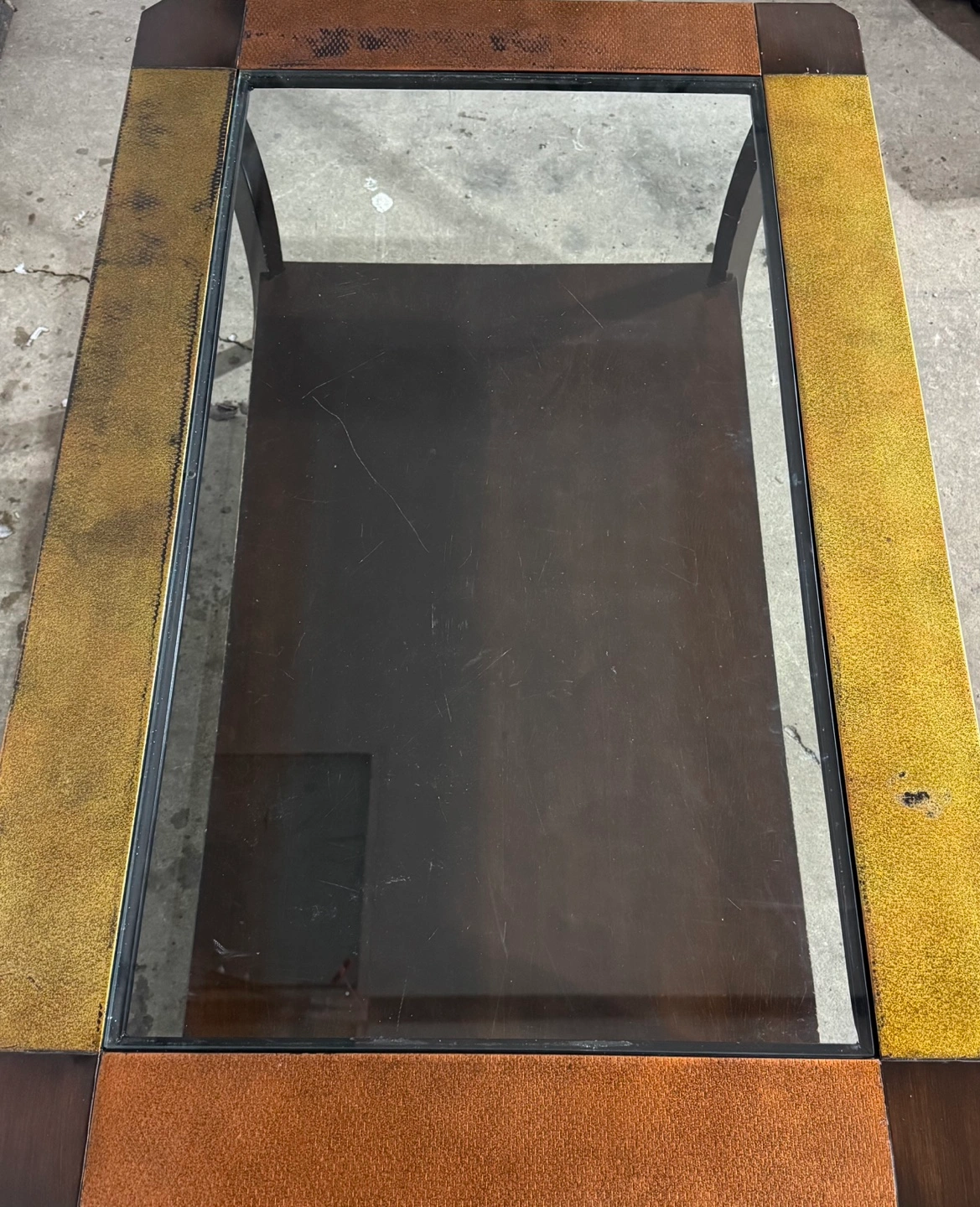 Upgrade your living room with this sleek glass-top coffee table. Featuring a sturdy dark wood frame with curved legs and a lower storage shelf, it’s both stylish and functional. Perfect for displaying decor or keeping your space tidy. Dimensions: H: 18” L: 28” W: 44”