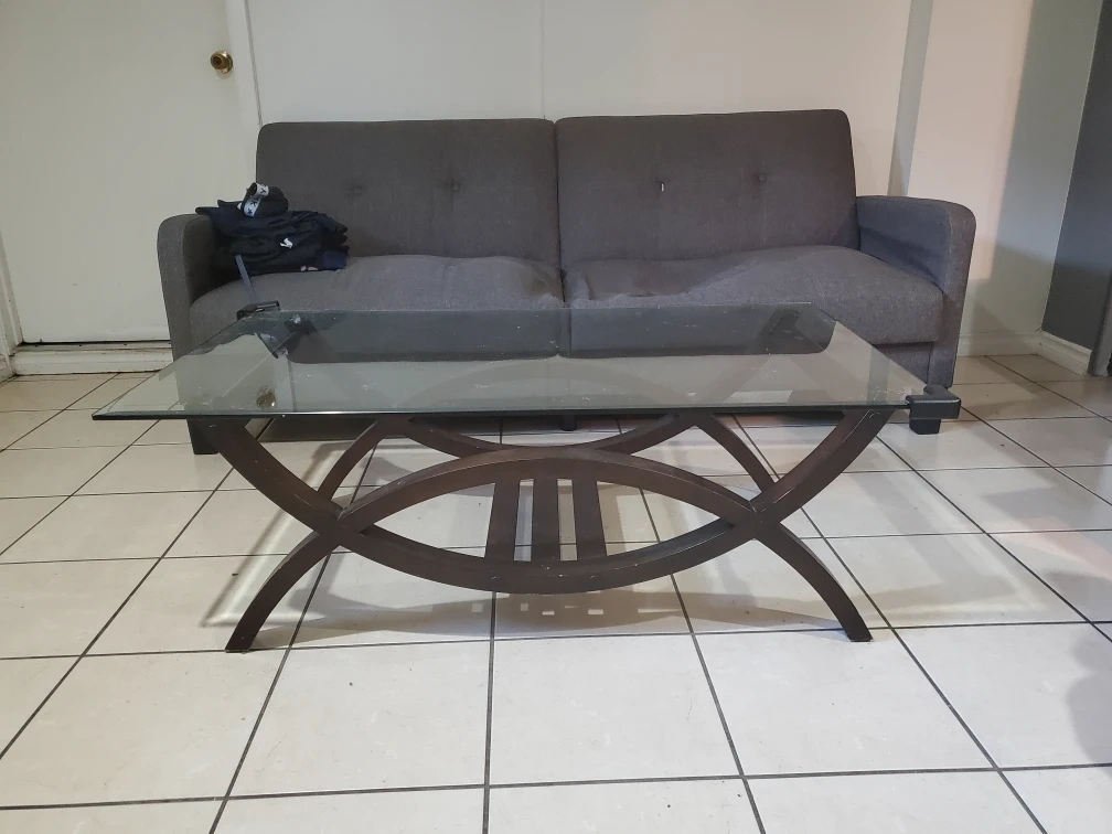 60Selling a coffee table with a glass top and a unique wood base. Delivery for $15, but can also pickup. The glass has some corner protectors. It's in great condition and would be an excellent addition to any living room. One edge is chipped, but covered by a corner protector (visible in the photos).