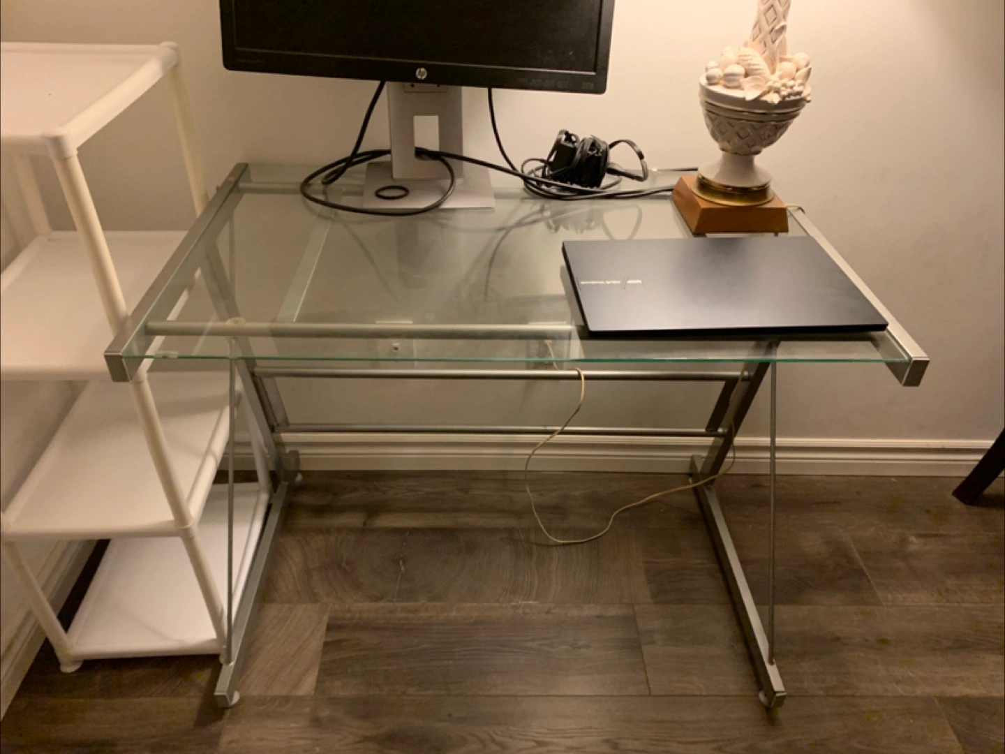 68Selling a glass top desk with a silver metal frame. It's in good condition and would be perfect for a home office or study space. The desk is sturdy and provides a clean, modern look. It's a great addition to any room! Dimensions: Long 94cm Width 60.5cm Height 73cm