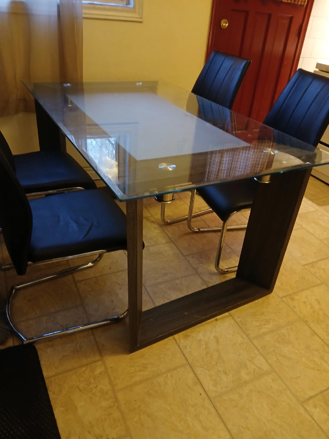 Glass Top Dining Table with 4 Zebra Print Chairs
