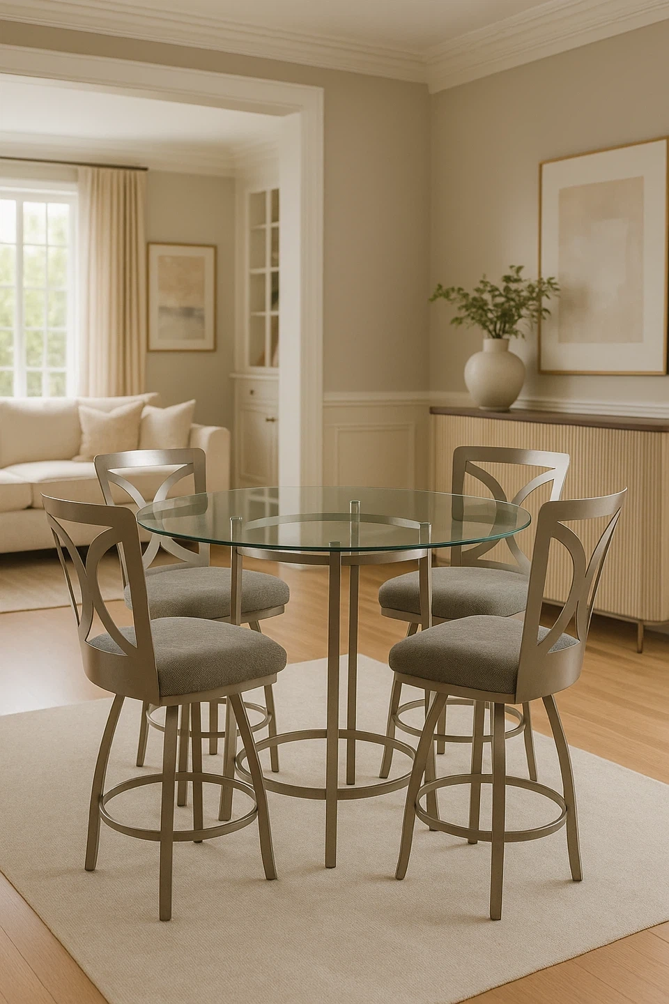 Glass Top Round Dining Table with 4 Bar Stools