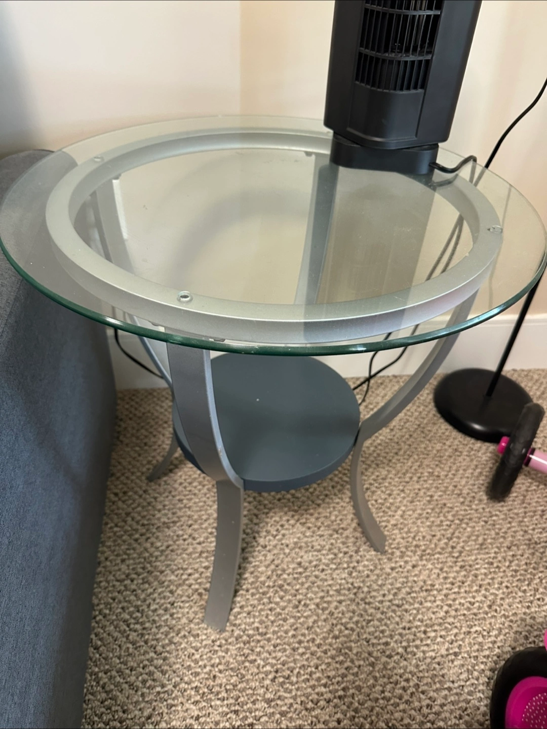 HomeBuy and sellGlass Top TableTimaGlen Arbour600 reviewsGlass Top TableFurniture · $40Selling a glass top coffee table and two side tables. It has a silver frame and a lower shelf for extra storage. Perfect for a living room or bedroomConditionGoodWhere to meetLevantic bakery0 chats·0 favourites·38 viewsGet the Karrot app to chatOther listings by TimaShow allBlack Heeled Ankle Boots - Size 7.5$3Glen ArbourIKEA SNIGLAR Crib, White$32Glen ArbourCalvin Klein Heels - Size 8$3Glen ArbourZara Size 39$3Glen ArbourCall It Spring Black Heels - Size 8$3Glen ArbourJessica Simpson Black Heels, Size 7$3Glen Arbour