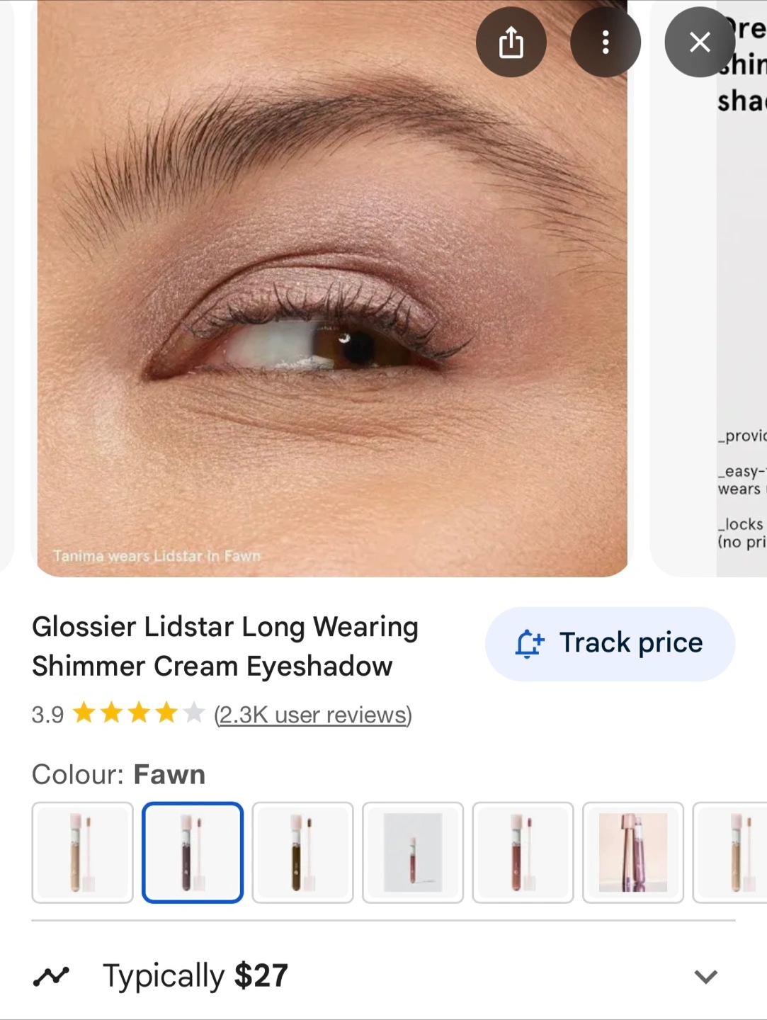 Selling a Glossier Lidstar Long-Wearing Shimmer Cream Eyeshadow in the colour Fawn! Retails for around $27. Each has 15$ Or all lot has 30$