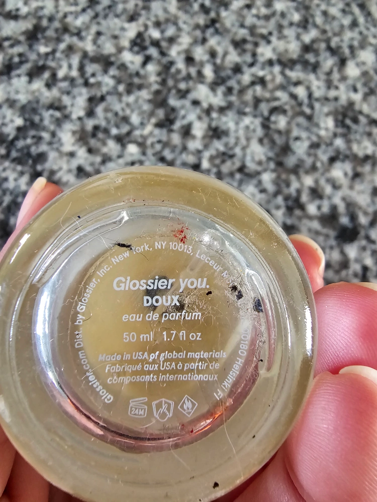 250Glossier You perfume. 50 ml / 1.7 fl oz. Lightly used. Some staining on the bottle and cap. Authentic!! Glossier You Doux is a soft and serene woody fragrance that opens with Sweet Violet, followed by a precious blend of woody Palo Santo, Frankincense and smoky Myrrhheightened by a warm, musky base driven by Ambrox. Doux is a skin-scent enhancer that wears close to the skin and true to you, never overpowering your unique scentbecause you are the final ingredient. $55 OBO