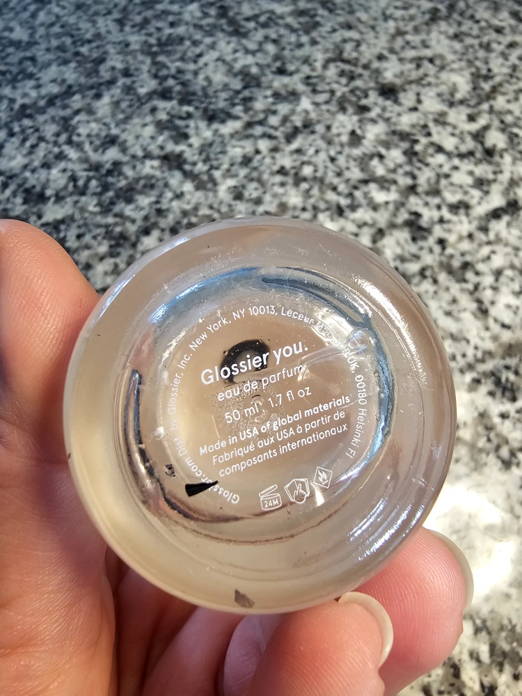 250Glossier You perfume. 50 ml bottle. Some scratches on the bottle. Authentic! Bottle almost full. Sparkling pink pepper, earthy iris, with a warm, slightly-sweet base, this eau de parfum leaves a scent impact that is uniquely you: soft, warm and familiar. $50 OBO 50 ml