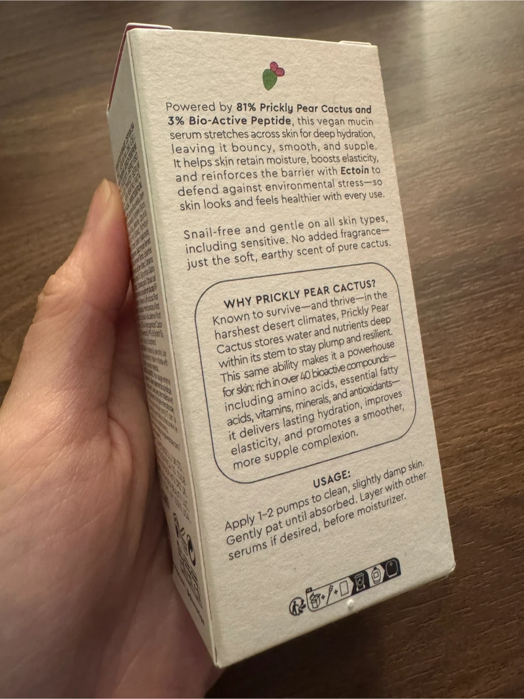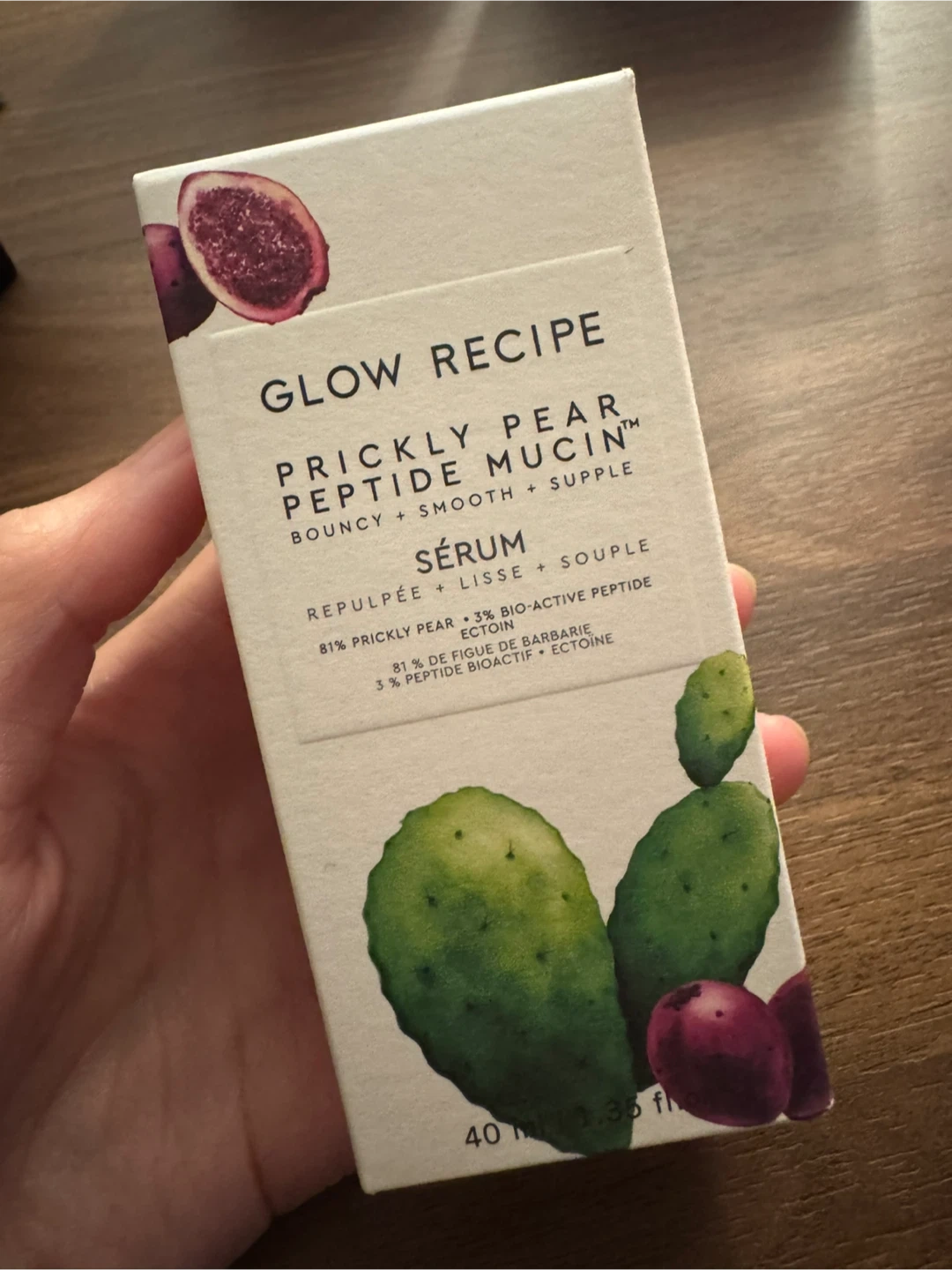 I'm selling a Glow Recipe Prickly Pear Peptide Serum! This vegan mucin serum stretches across skin for deep hydration, leaving it bouncy, smooth, and supple. It helps skin retain moisture, boosts elasticity, and reinforces the barrier, with Ectoin to defend against environmental stress—so skin looks and feels healthier with every use. It's also snail-free and gentle on all skin types, including sensitive. No added fragrances—just the soft, earthy scent of pure cactus