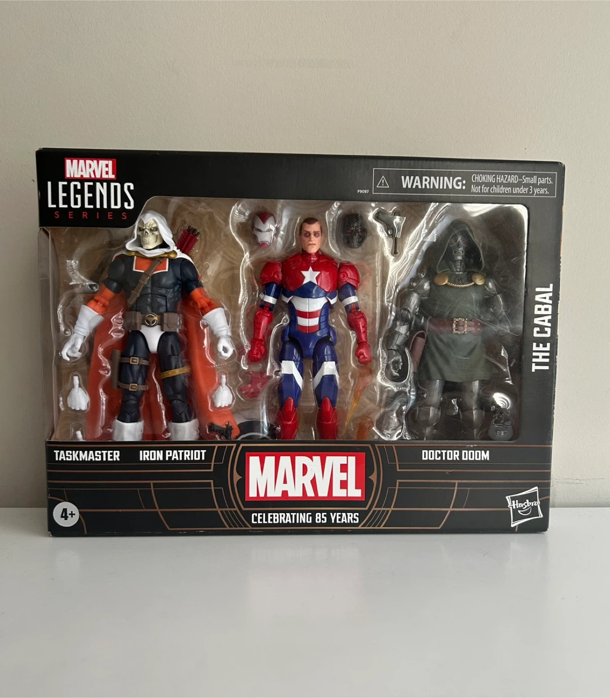 Brand New Set of Marvel Legends Series: The Cabal 85th Anniversary Comics Collectibles 6 inch Action Figures. Includes Taskmaster, Iron Patriot, and Doctor Doom.