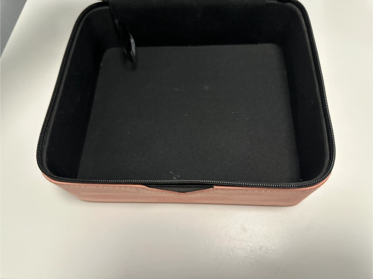 This is a Prada Beauty cosmetic case. It's black and pink with a zippered closure. Interior is lined and black.