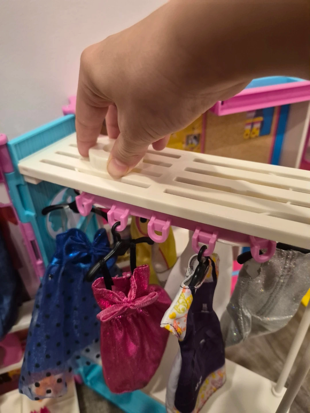 This is a Barbie Dreamhouse with multiple floors, dress closet and accessories. It includes various rooms, furniture, and dolls. It's a fun playset for kids. Great for imaginative play!