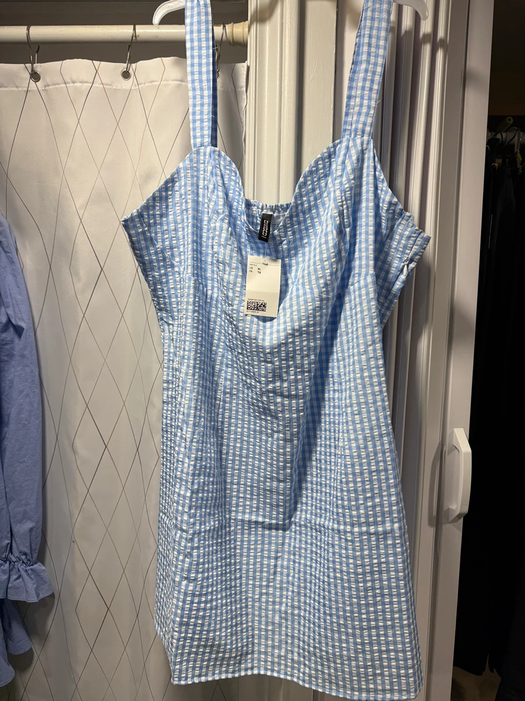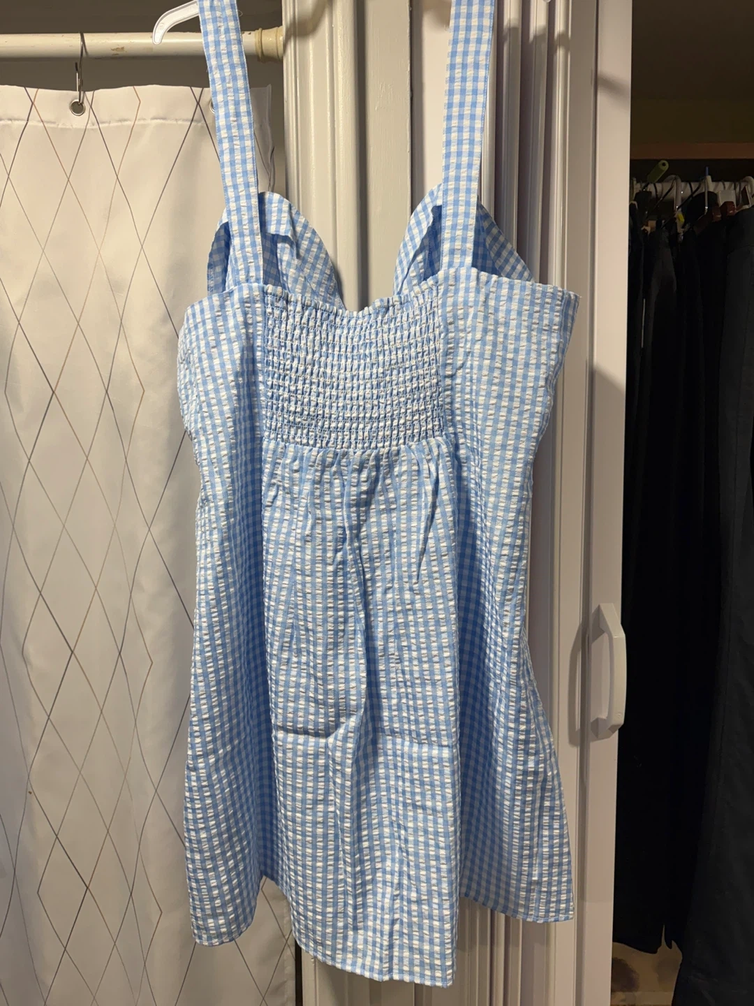 This is a blue and white gingham smocked mini dress from Divided. It's a size XL. Perfect for summer days!