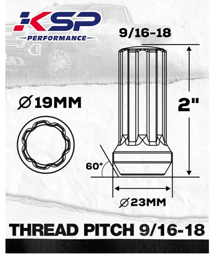 32pcs Black Spline Lug Nuts 9/16 Fits 1994-2011 Ram 2500 3500 +Anti Theft Key 2"