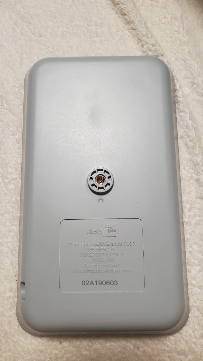 This Thera Lite device uses LED light therapy. It's powered by 24VDC/0.8A. Assembled in China.