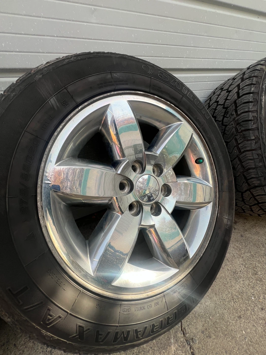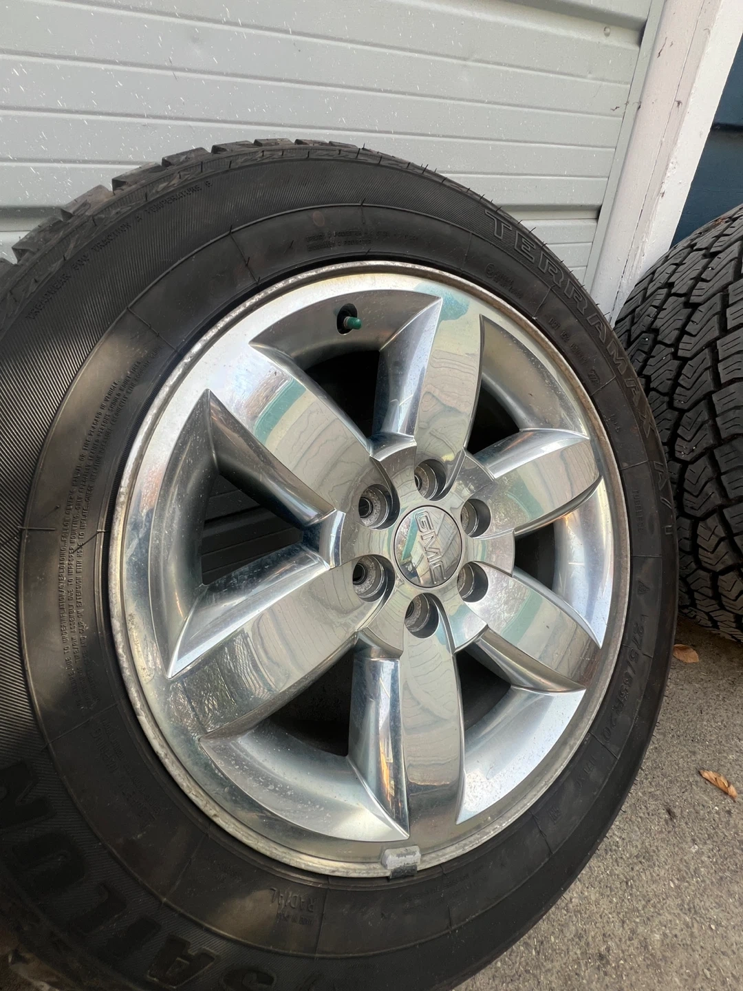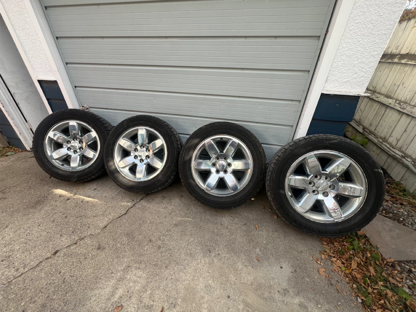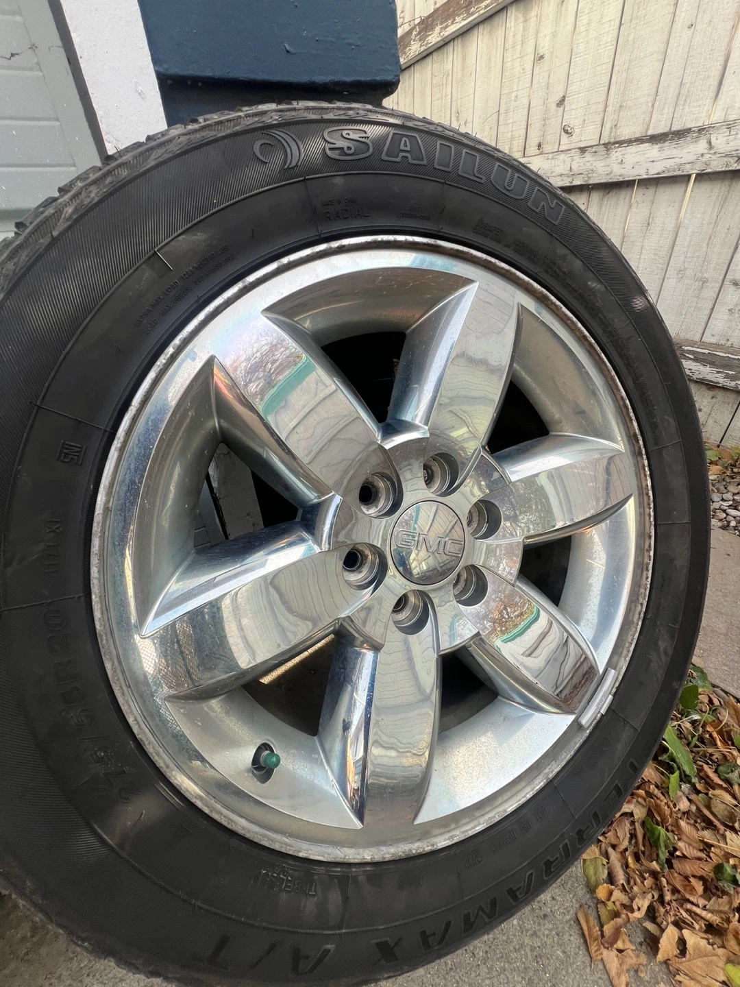 60Selling a set of four GMC chrome rims paired with Sailun Terramax A/T tires. These rims and tires are in good condition and ready to be installed, already balanced and good for another season at least. The tire size is 275/55R20. Bolt pattern is 6x139.7 or 6x5.5. I’m selling simply because I’m not a huge fan of 20” wheels have no use for them.