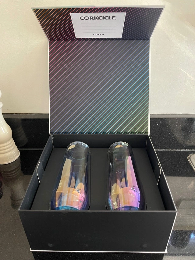I have two new-in-box sets of CORKCICLE brand glass flutes available.