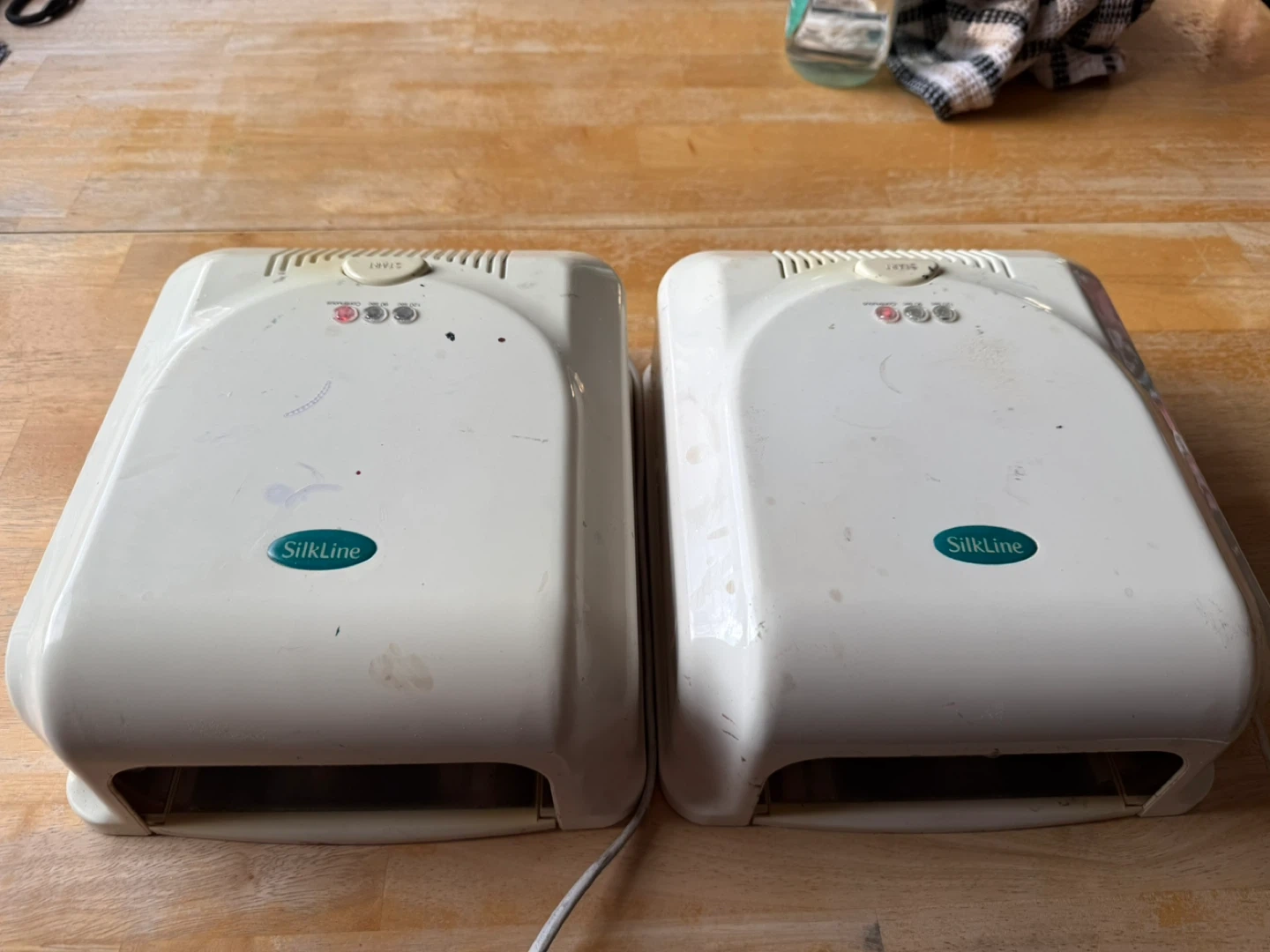 Selling two SilkLine nail dryer lamps. These are basic UV lamps for curing gel polish. Each unit has a start button and indicator lights.