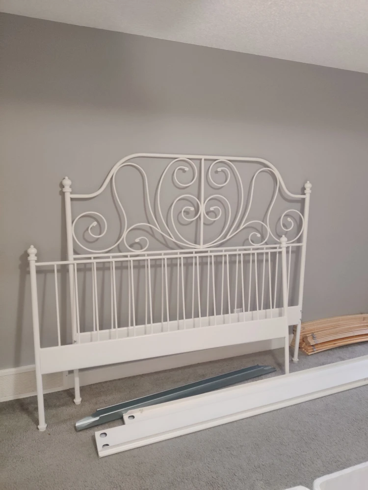 Queen size metal bed frame with wooden slats . Selling because I upgraded to King size bed.