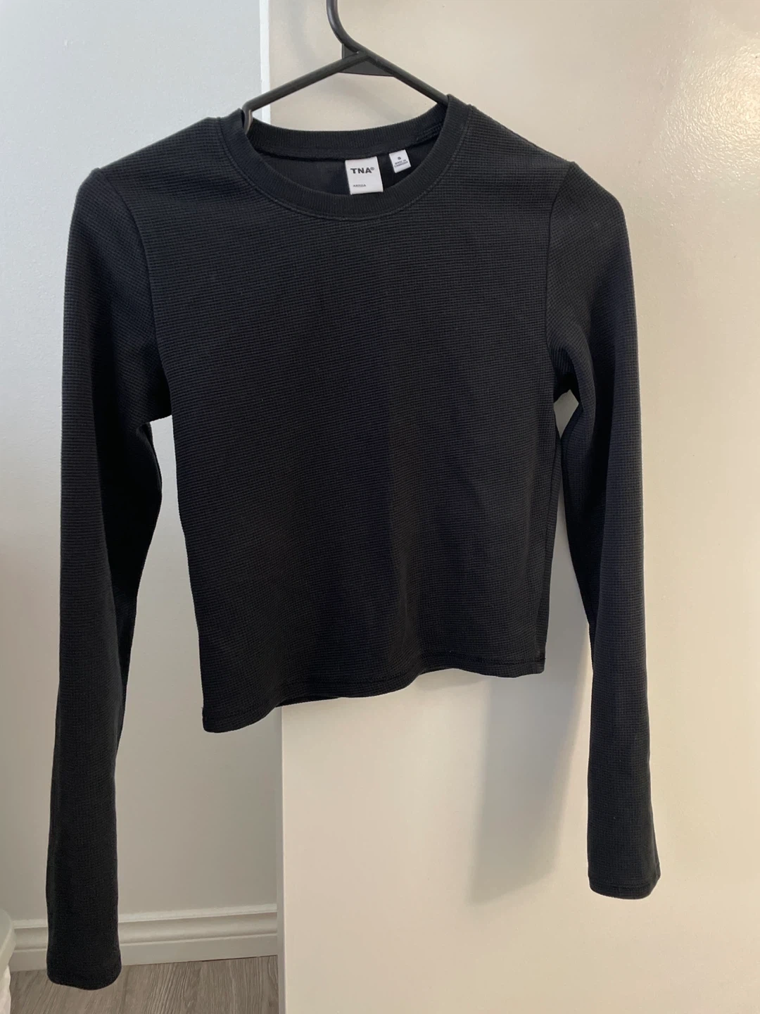 TNA Black Long Sleeve Waffle Knit Crop Top