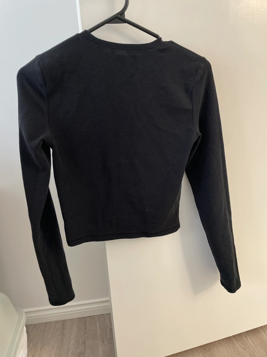 TNA Black Long Sleeve Waffle Knit Crop Top
