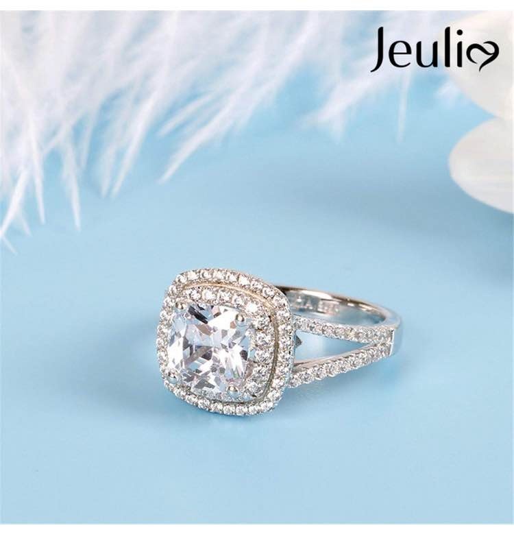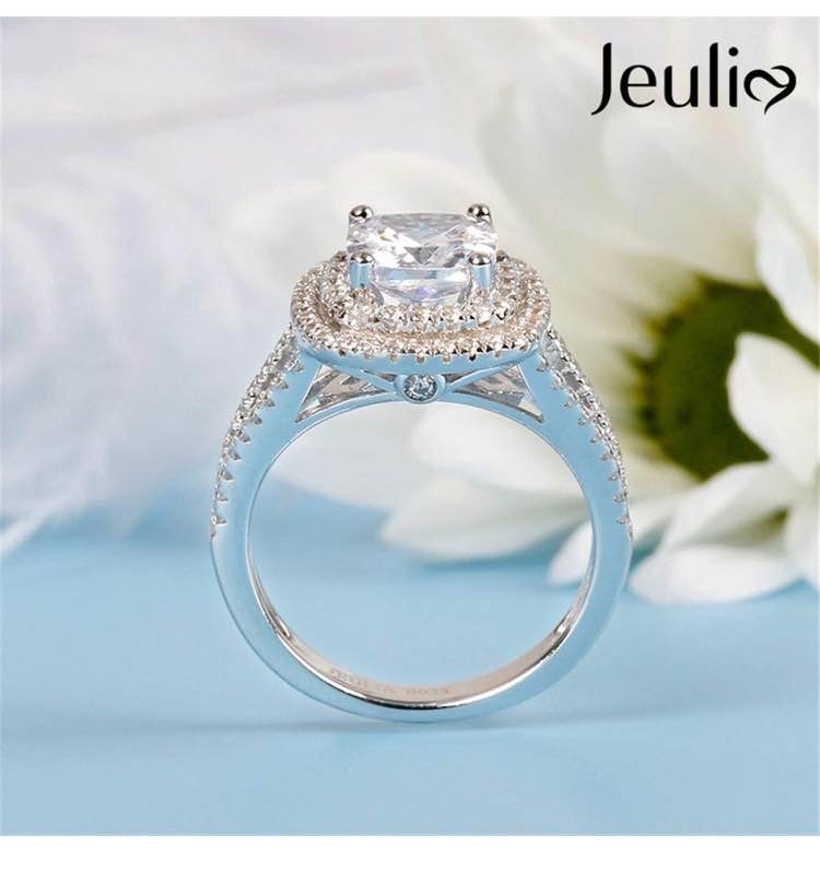 Cushion Cut Halo Ring for Women 925 Sterling Silver Wedding Engagement Anniversary Promise Ring Princess Cut Engagement Ring Bridal Set Engagement Moissanite Diamond