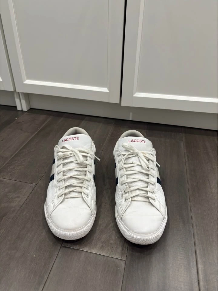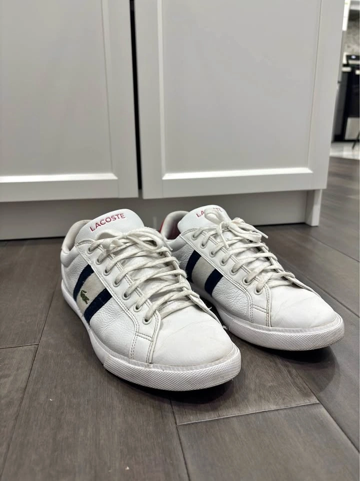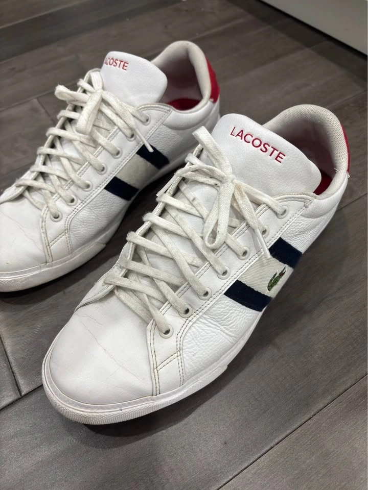 Selling Lacoste Grad Vulc 120 sneakers in good used condition. Clean white look with normal wear/creasing. Still lots of life left and comfortable for everyday use. Size: US 10 / UK 9 / EU 43.