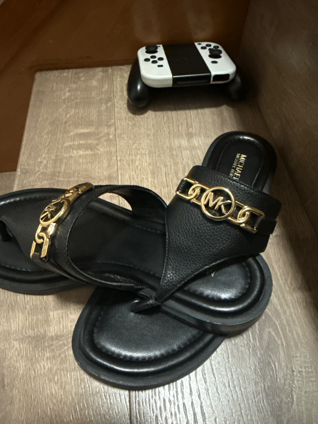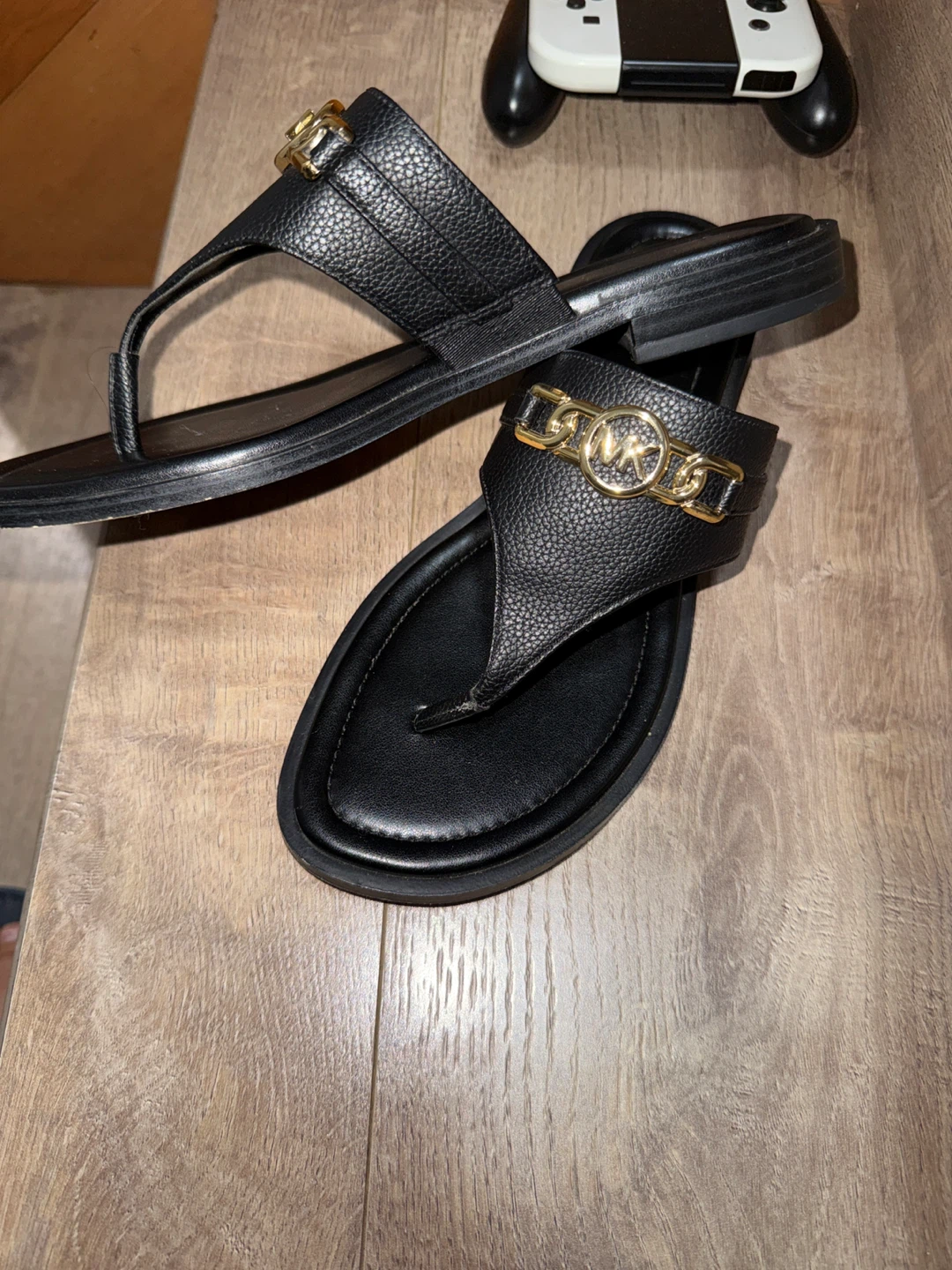 Michael Kors Black Leather Chain Thong Sandals