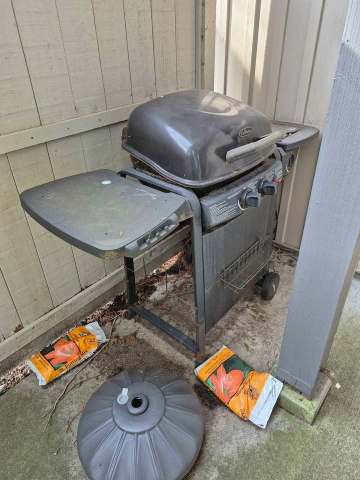 Selling old BBQ stove that's been sitting outdoors/in backyard for a while. Not sure if it works. There's gas tank as well but not sure how much gas is left. Will need some scrubbing/cleaning up.