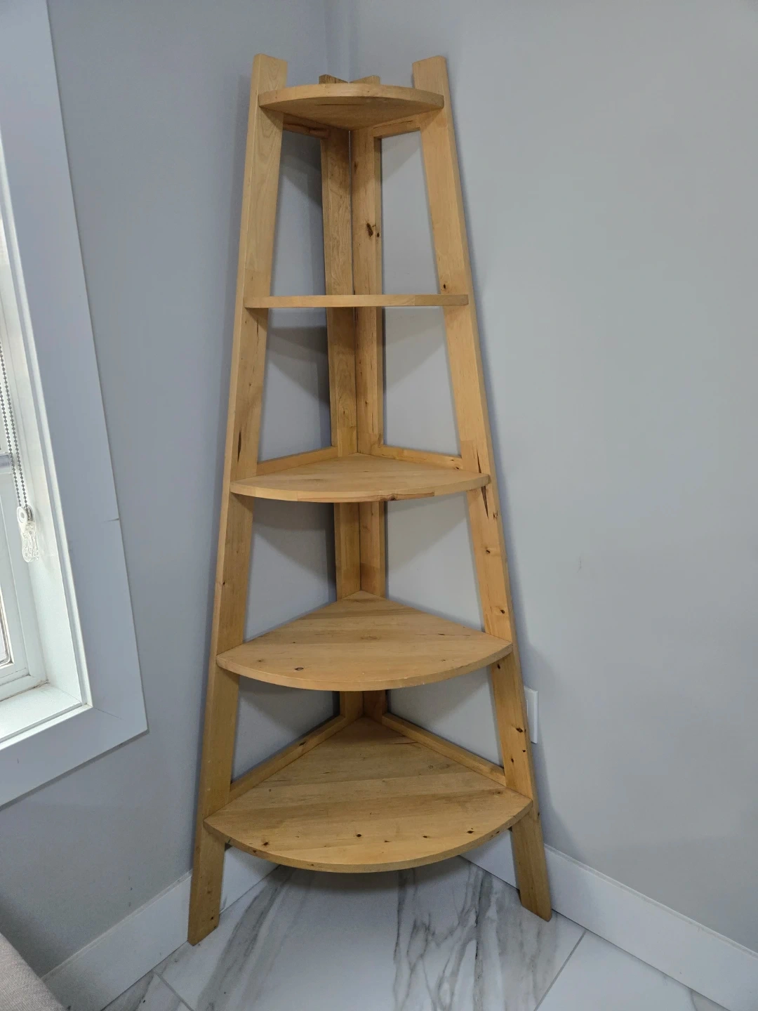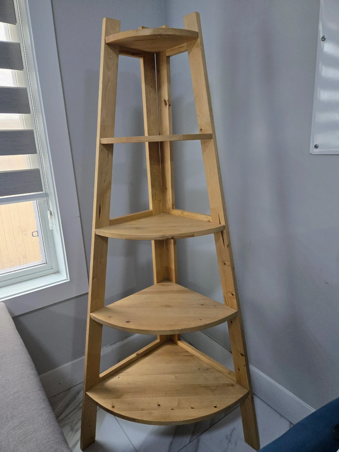 Buy & SellWooden Corner Shelf UnitWooden Corner Shelf Unit$103This is a natural wood corner shelf unit with five tiered shelves. It's designed to fit neatly into any corner. Wood material.ConditionNewWHERE TO MEETCheck LocationView MapSELLERverifiedGaganBear Creek Park600 reviews0 chats·6 favorites·127 viewsSEND CHAT TO SELLERHi Gagan! I’m interested in your listing.Hi Gagan! I’m interested in your listing.Get the Karrot app to chatSign In to chat