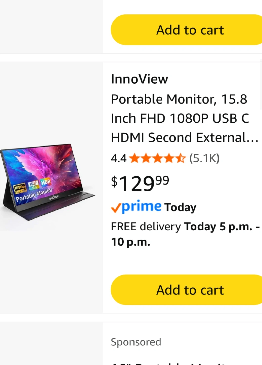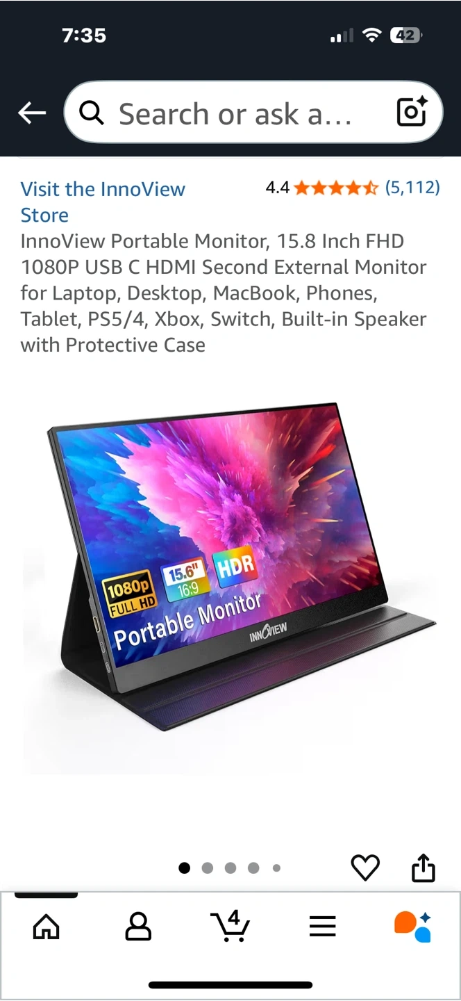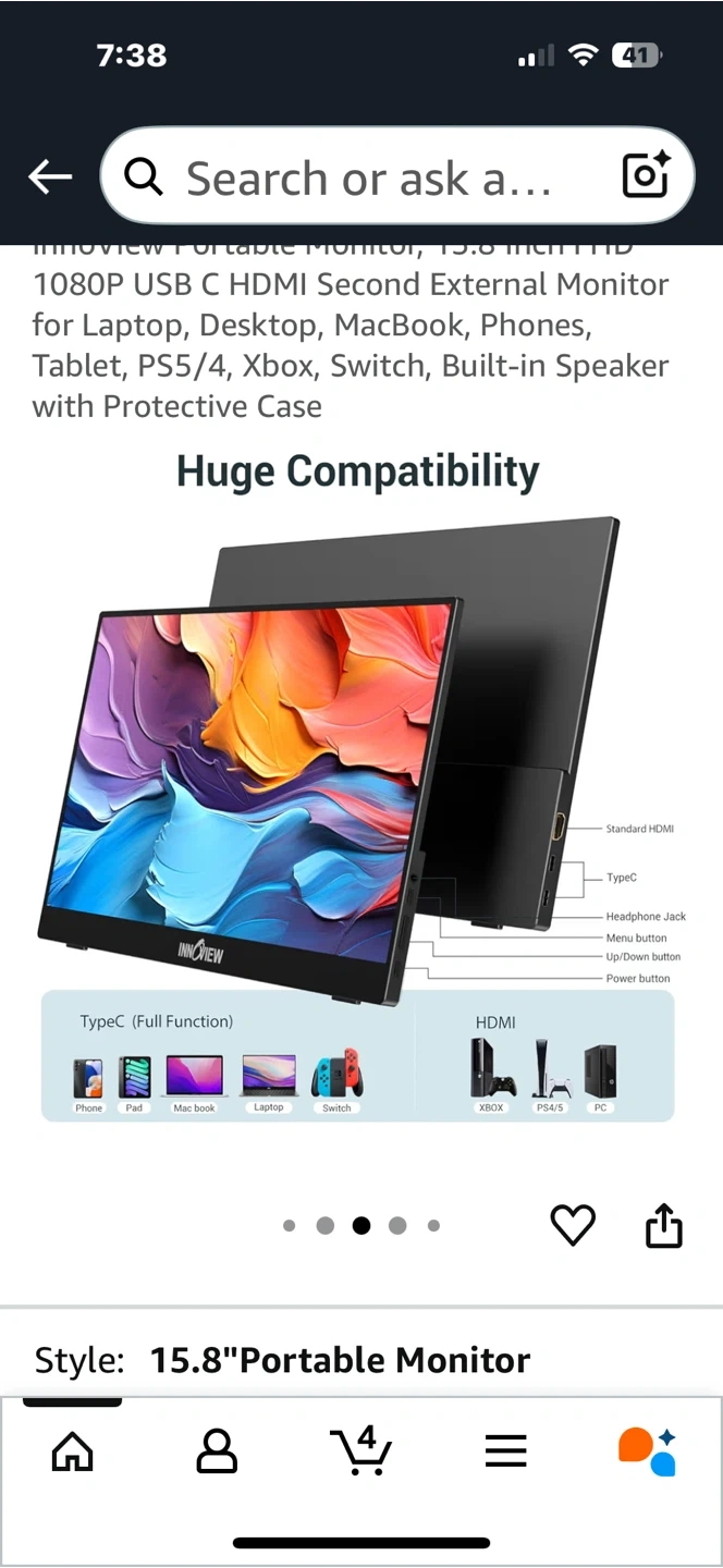 Selling an InnoView 15.8 inch portable monitor. It's a FHD 1080P USB-C HDMI second external monitor, perfect for laptops, desktops, MacBooks, phones, tablets, and even gaming consoles like PS5/4, Xbox, and Switch. It also has a built-in speaker and comes with a protective case.