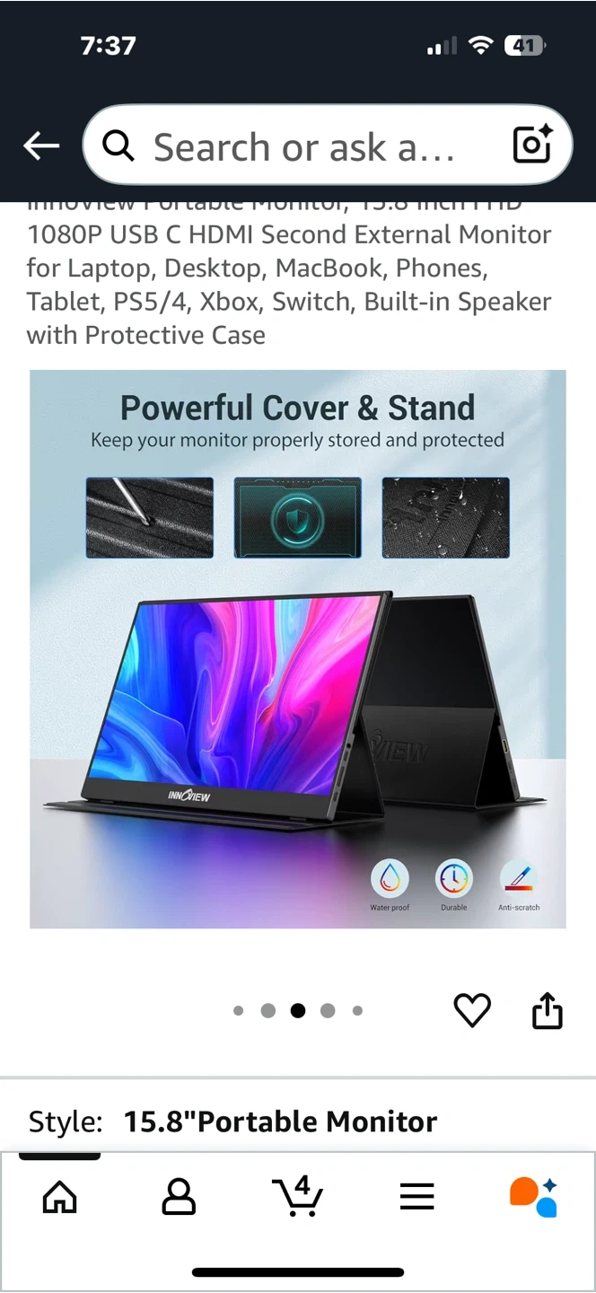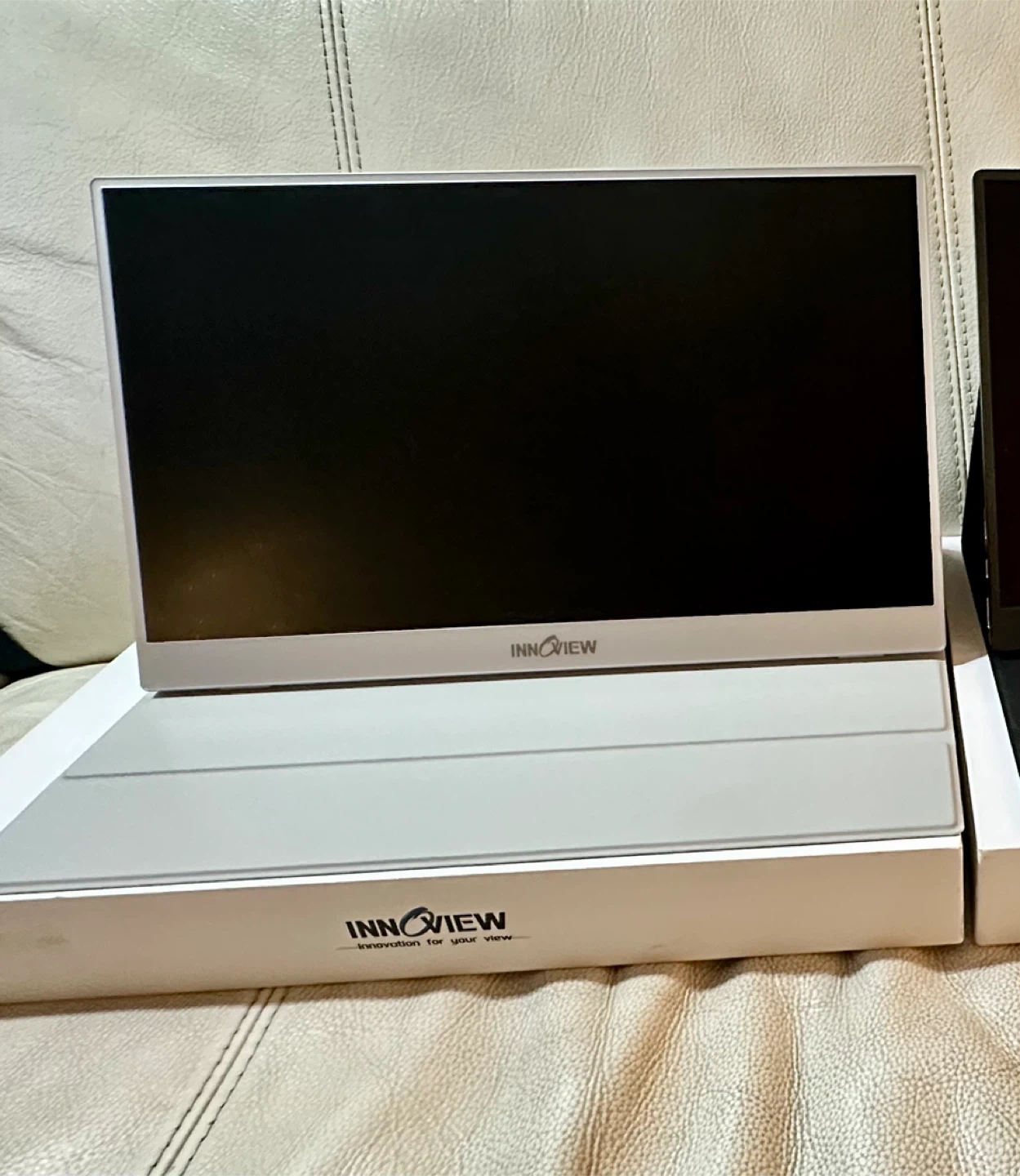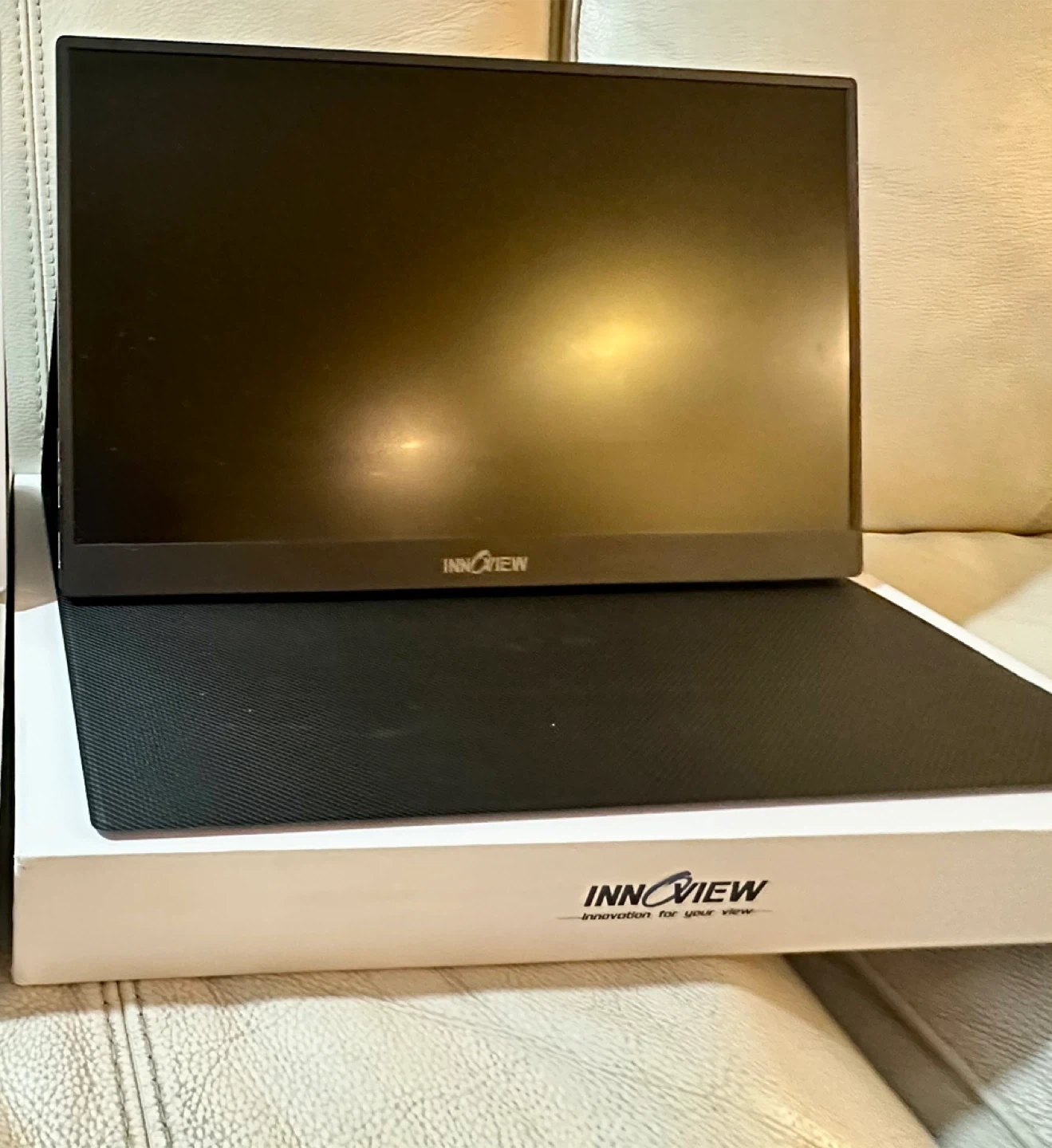 Selling an InnoView 15.8 inch portable monitor. It's a FHD 1080P USB-C HDMI second external monitor, perfect for laptops, desktops, MacBooks, phones, tablets, and even gaming consoles like PS5/4, Xbox, and Switch. It also has a built-in speaker and comes with a protective case.