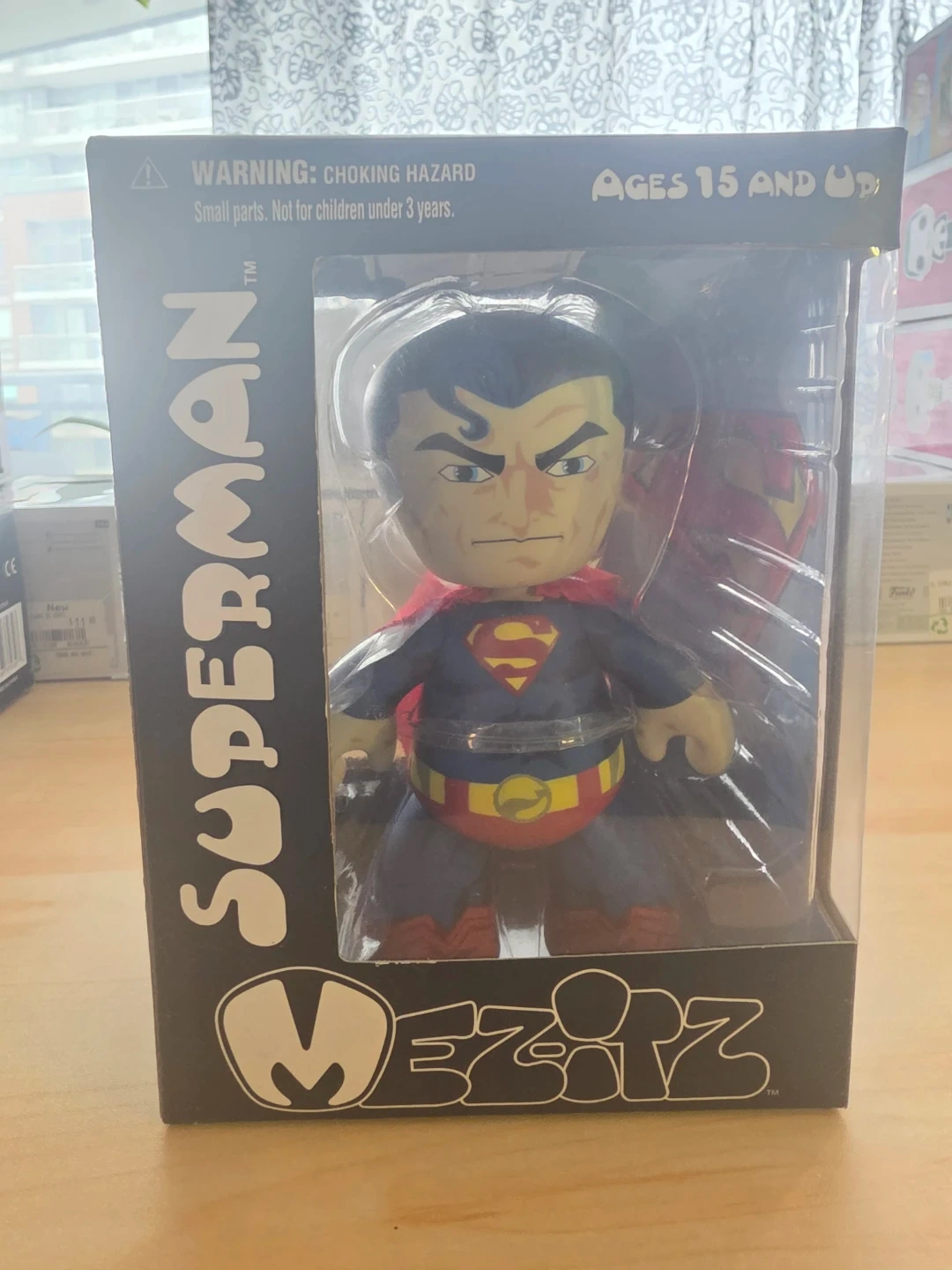 This is a Mezco Toyz Mez-Itz Superman action figure. It's designed for ages 15 and up. The figure comes in its original packaging.