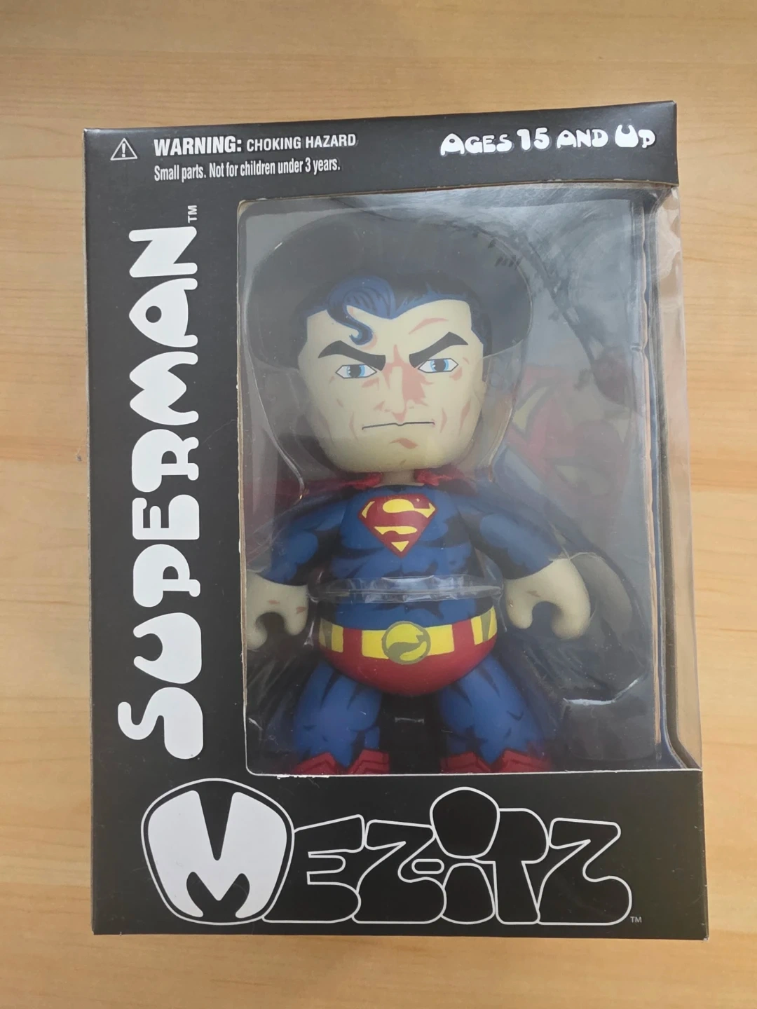 This is a Mezco Toyz Mez-Itz Superman action figure. It's designed for ages 15 and up. The figure comes in its original packaging.