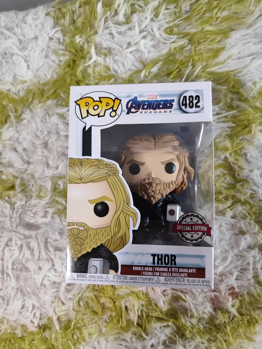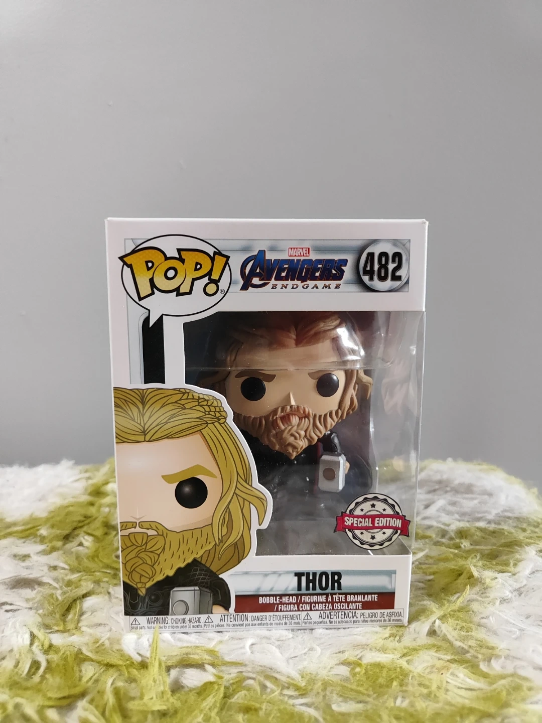 Marvel's Avengers Endgame Funko Pop! figure #482 featuring Thor. This is a special edition bobble-head vinyl figure. It's in its original packaging and old man steve.OBO